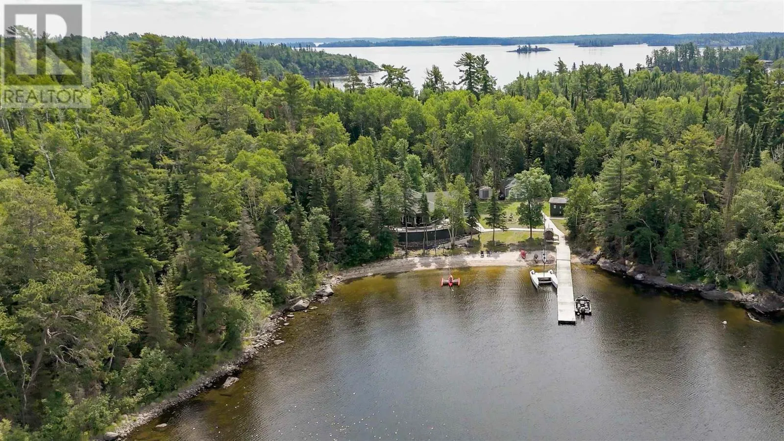 Introducing the Crown Jewel of Lake of the Woods — Queen Bee Island, a rare 26-acre plus private island offering an extraordinary one-mile stretch of pristine shoreline, towering white pines and numerous coves and vantage points. Perfectly positioned just minutes by boat from Bare Point Marina, this remarkable property delivers unmatched privacy, natural beauty, and a one-of-a-kind lifestyle experience. At