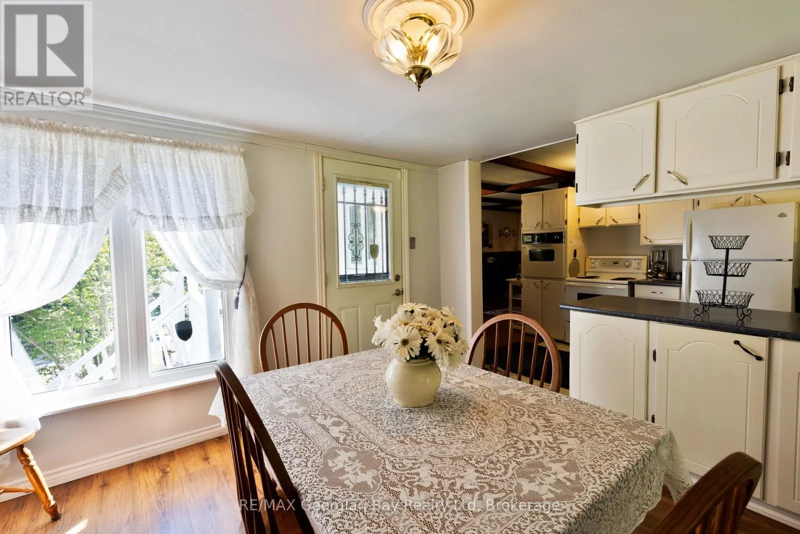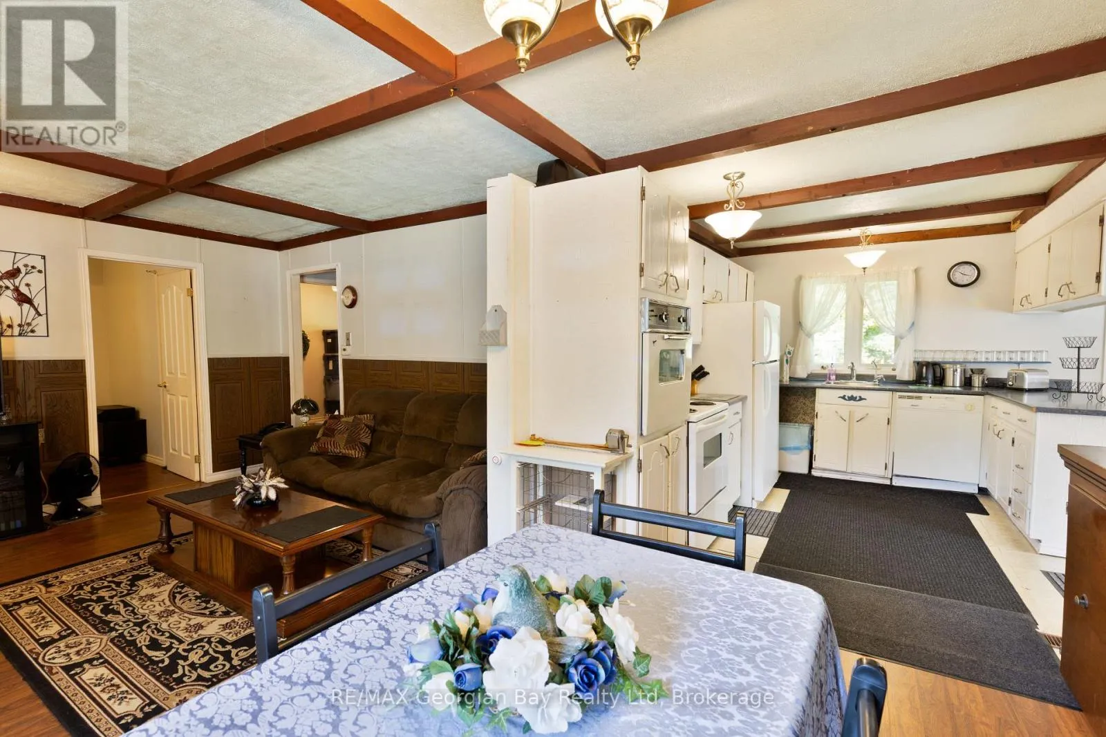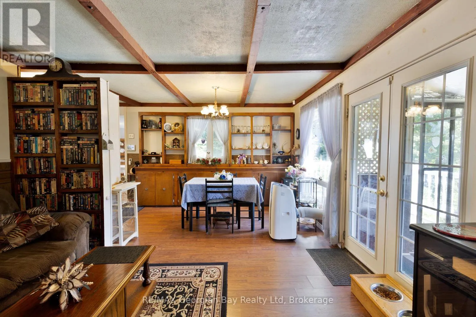 +"PublicRemarks": "Welcome to 450 Assiniboia Street. This home is a gem set on over a private half acre with a detached double garage with hydro that offers added workshop, hobby space, man cave or storage. This home offers 1300 sq ft finished space with a warm welcoming atmosphere, full of charm, character and comfort all on one level. This unique home offers original coffered ceilings and strip hardwood flooring and solid 5 panel wood doors and quality trim from a by-gone era. A functional kitchen, cozy bright and spacious living room and separate dining area flows comfortably, convenient laundry area with newer appliances, newer bathroom and a convenient 2nd bath. Soak up the sunshine in the sunroom with natural light or have your morning coffee on the updated deck - a perfect spot to unwind after a busy day. Room to roam in a fully fenced massive private yard with gardens and mature shade trees is a retreat for children, pets, gardening and entertaining family & friends with bonfires on quiet evenings under the stars. This move-in ready property is perfect for first-time home buyers, downsizers or just looking to simplify without sacrificing comfort and space in a quiet family friendly neighbourhood. On municipal services with additional features - newer furnace, newer water heater, newer roof, newer sump pump, central air, garden shed, 2nd drive with gate. Delight in the small town community charm. So much to do with easy access to atving, boating, fishing, swimming, hiking, cycling, snowmobiling, golfing, skiing. Just minutes to the beautiful shores of Georgian Bay beaches, marinas, trails, parks and walking distance to Tay's outdoor rink, park, baseball field, community center and library & local amenities. A short drive to Midland, Orillia and Barrie. Offers endless possibilities for builders, renovators, investor! Don't miss your chance to make this charming and affordable home your own and get into the market. Call today to arrange your own private viewing! (id:62650)"