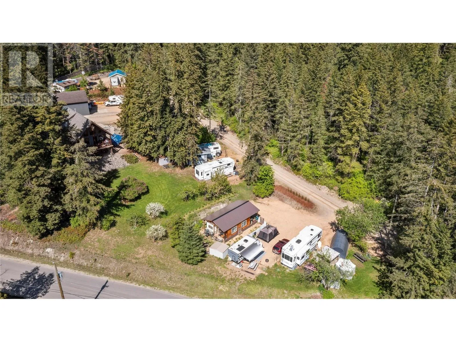 An exceptional investment opportunity awaits on this versatile 1.62-acre property, ideally located just minutes from Shuswap Lake, Sunnybrae Winery, and the beach. With multiple income-generating assets and flexible use options, this unique parcel is perfectly suited for those seeking commercial potential with residential perks. The property includes: Nine fully serviced RV pads with separate hydro meters, water, and sewer—ready to