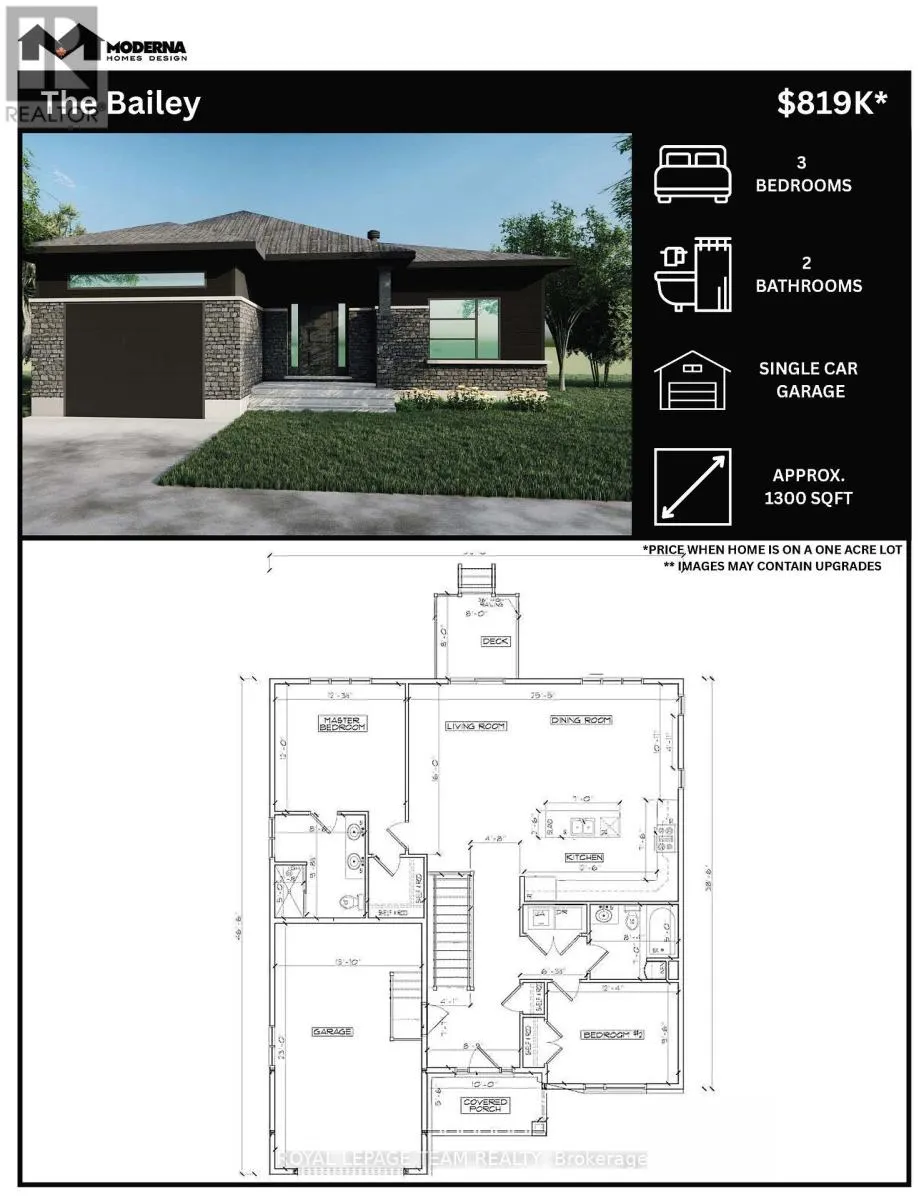Build your custom dream home on Lot Five in Winchesters Orchard Grove Development, a 2.25+ acre site close to the quaint and vibrant town of Winchester and the City Ottawa. The featured Matrix model is approximately 1,500 sq ft bungalow with three bedrooms, two bathrooms, an open-concept layout, gourmet kitchen, 9-foot ceilings, double garage, and elegant stone-and-siding exterior. Envision starting