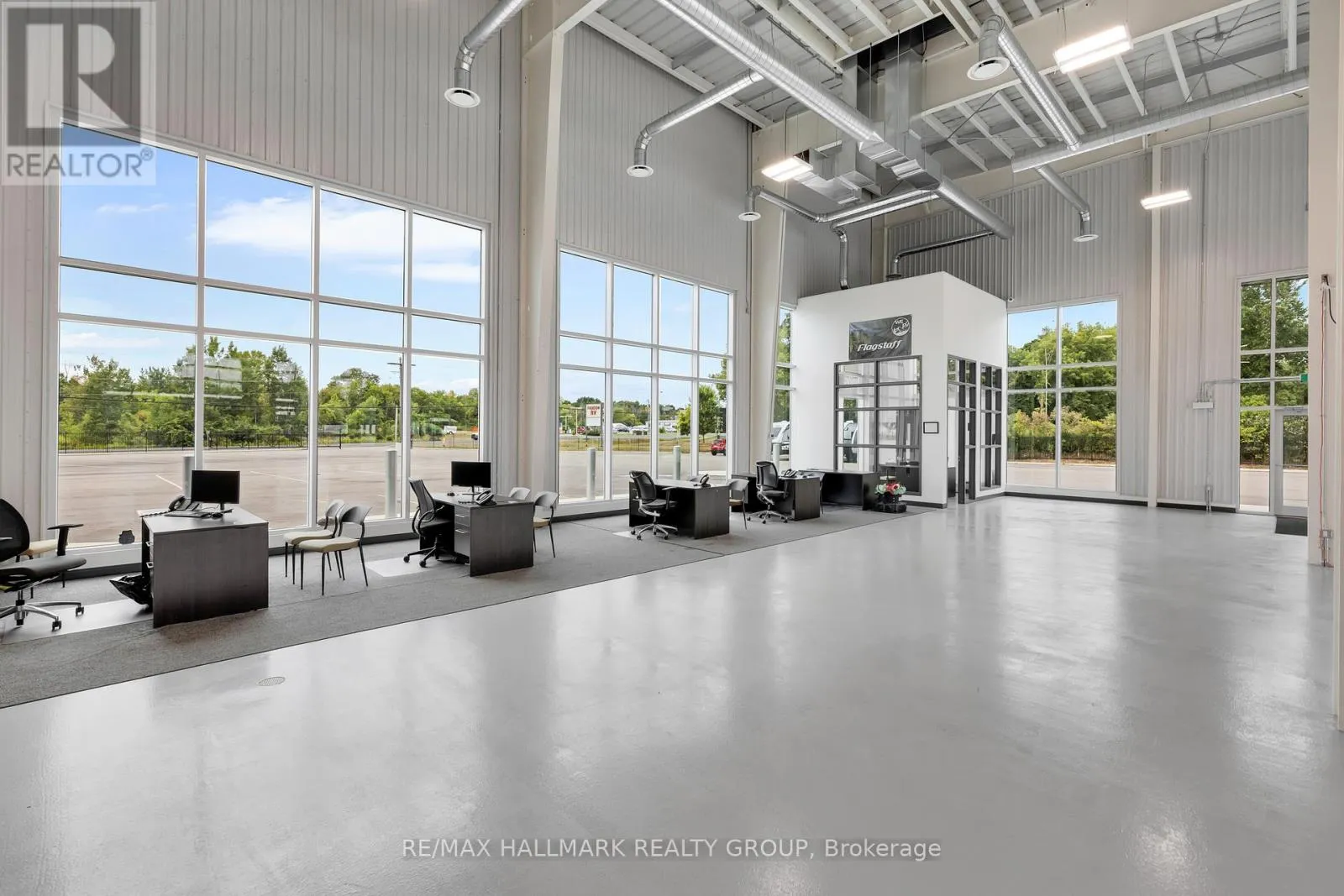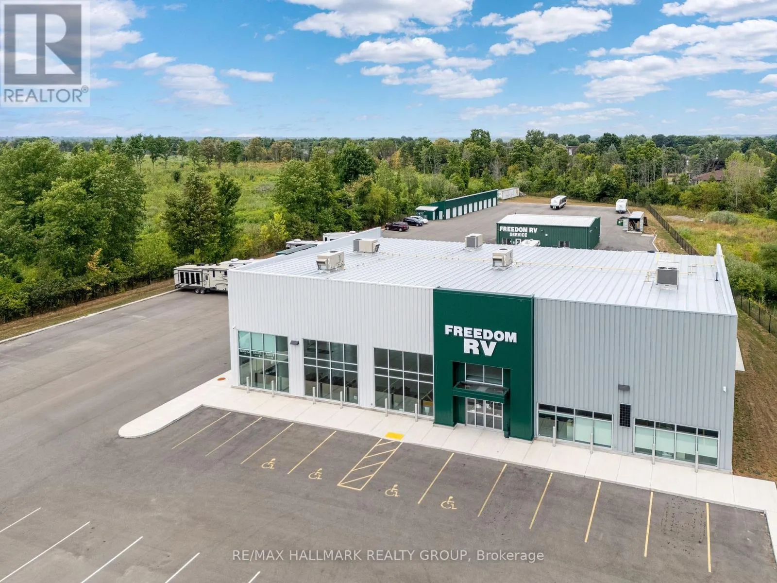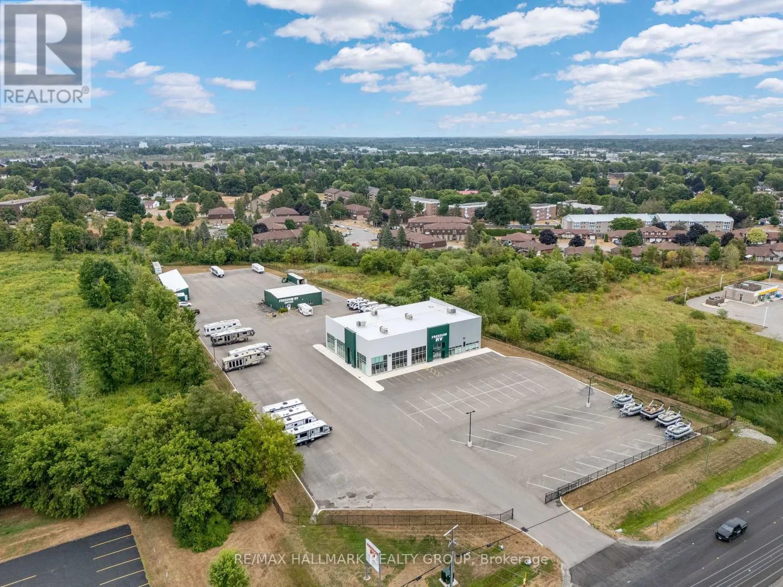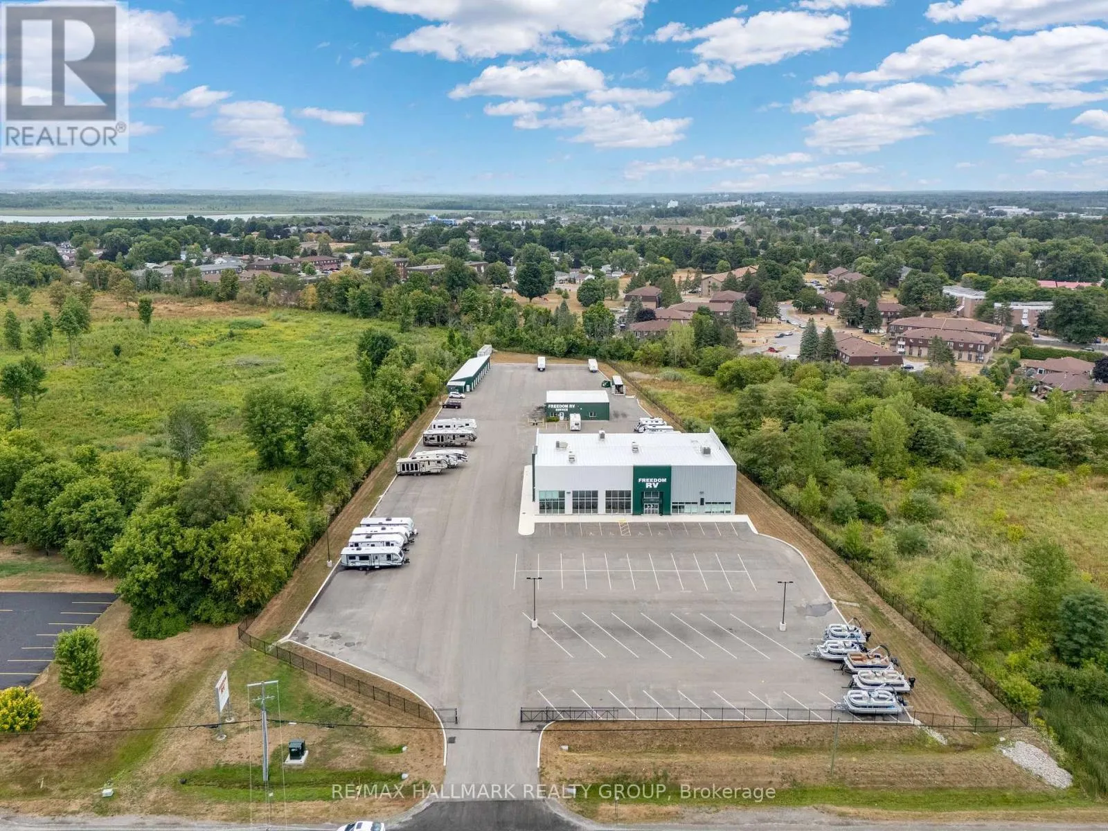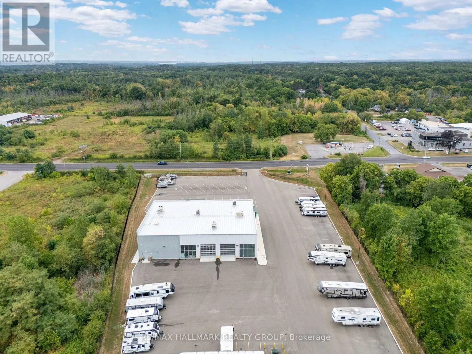 25,000 Vehicles/Day pass by this Exceptional 4 Acre Commercial Property with Versatile Buildings and 2 Year Old Showroom Space. This well-maintained commercial property offers a unique combination of functional buildings ideal for a variety of business uses. A standout feature is the purpose-built showroom designed for RV or large display. This impressive space offers high ceilings, abundant natural light through
