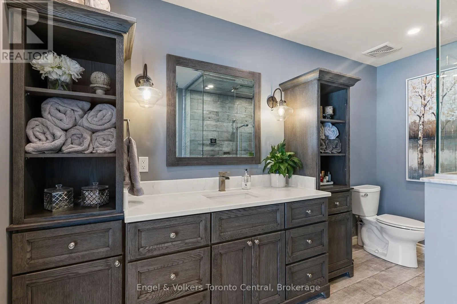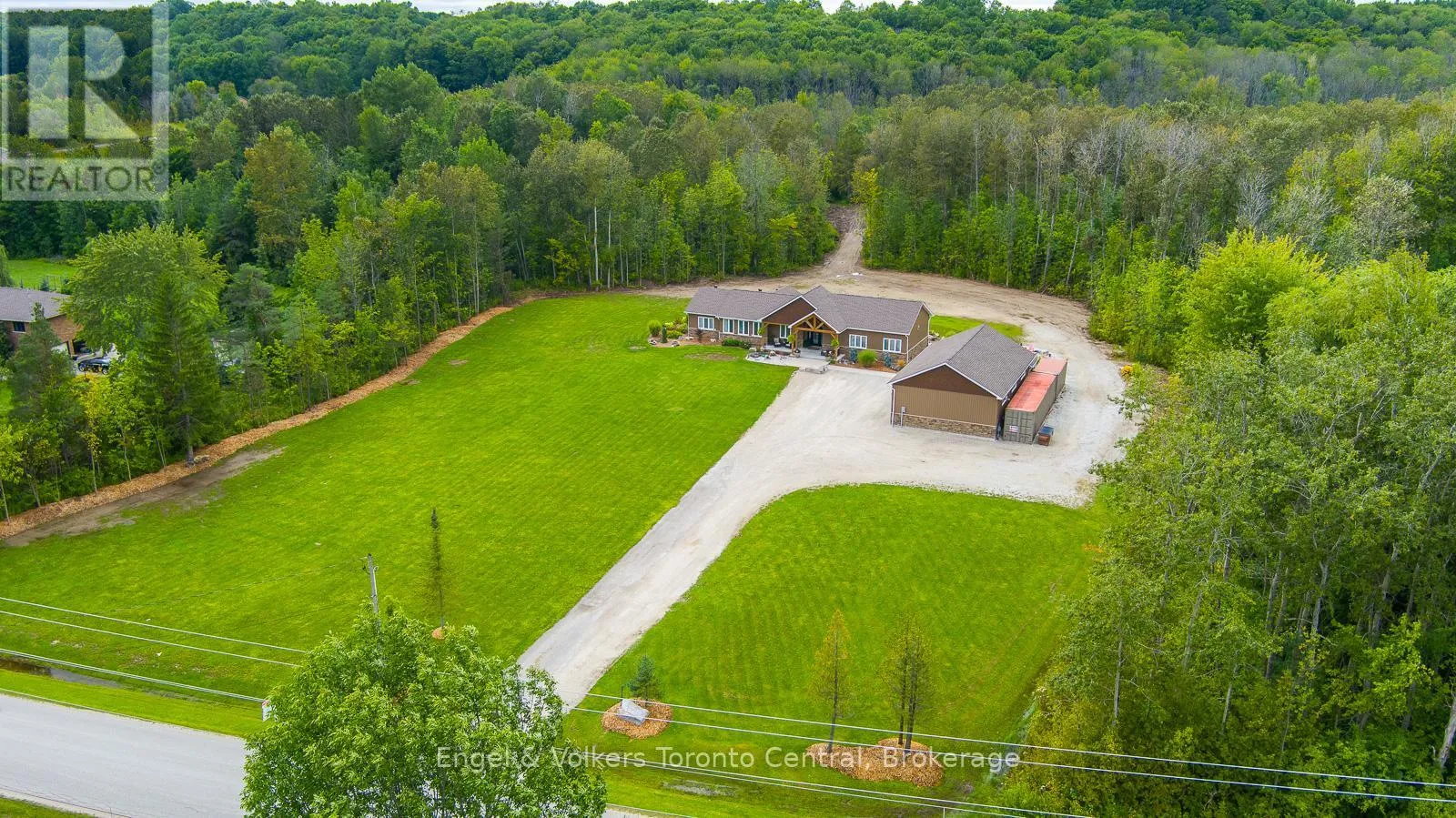 Indulge in Refined Country Living. This stunningly renovated bungalow, set on a private five-acre woodland, offers an unparalleled lifestyle of luxury and tranquility. The gourmet kitchen is a culinary masterpiece, boasting high-end stainless steel appliances and durable, elegant Cambria Quartz countertops. The open-concept layout flows beautifully into a grand living area with a breathtaking 13-foot vaulted ceiling and a striking