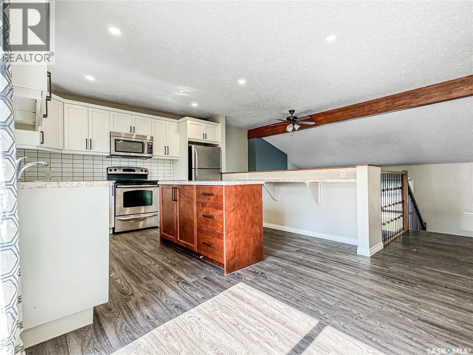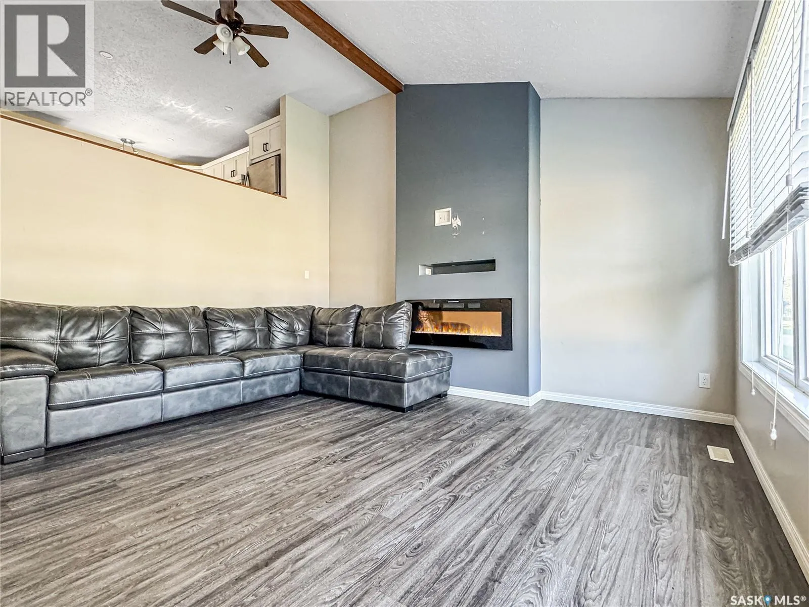 This bi-level home spans 1160 sq ft and boasts 5 bedrooms and 3 bathrooms, having undergone a full renovation a few years back. Step into the living room with an eye-catching electric fireplace right as you enter through the front door. Upstairs, revel in the bar-style seating in the kitchen overlooking the living room. The kitchen offers ample cupboard space,