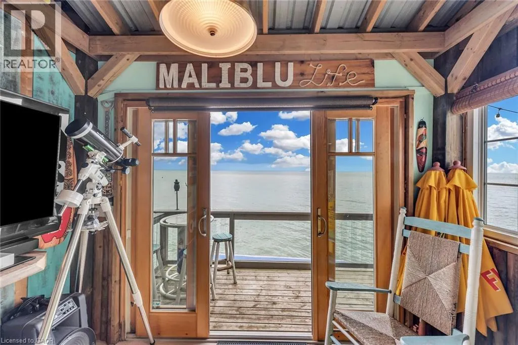 +"PublicRemarks": "Welcome to Maliblue & start "California Dreamin"! Beautiful & Bright Lake Erie waterfront property enjoying panoramic water views from 500sf deck w/hot tub, 84sf tiki hut/bar balcony & over 1050sf of conc. patio w/freshly poured conc. pad on break-wall'20. Positioned on 0.14ac lot is renovated yr round cottage incs 856sf of beachie themed living area + N. side lot (separate PIN#) incs metal clad garage, multi-purpose building & conc. double parking pad. Ftrs fully equipped kitchen, living room boasting p/g FP & sliding door deck WO, sun-room, 3 bedrooms & 4pc bath. Extras -ductless heat/cool HVAC'22, standby generator'24, roof'13, windows'18, kitchen/bath flooring'24, spray foam insulated under-floor'22, block foundation, holding tank, cistern, 100 hydro, fibre internet, appliances & furnishing!15 mins W/Dunnville. (id:62650)"