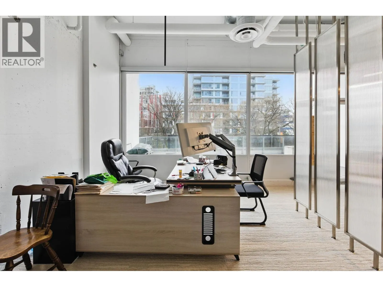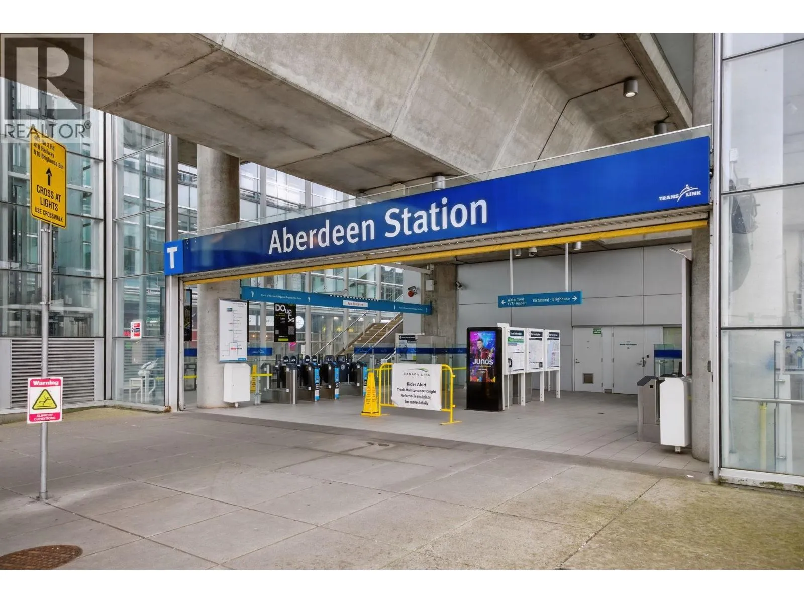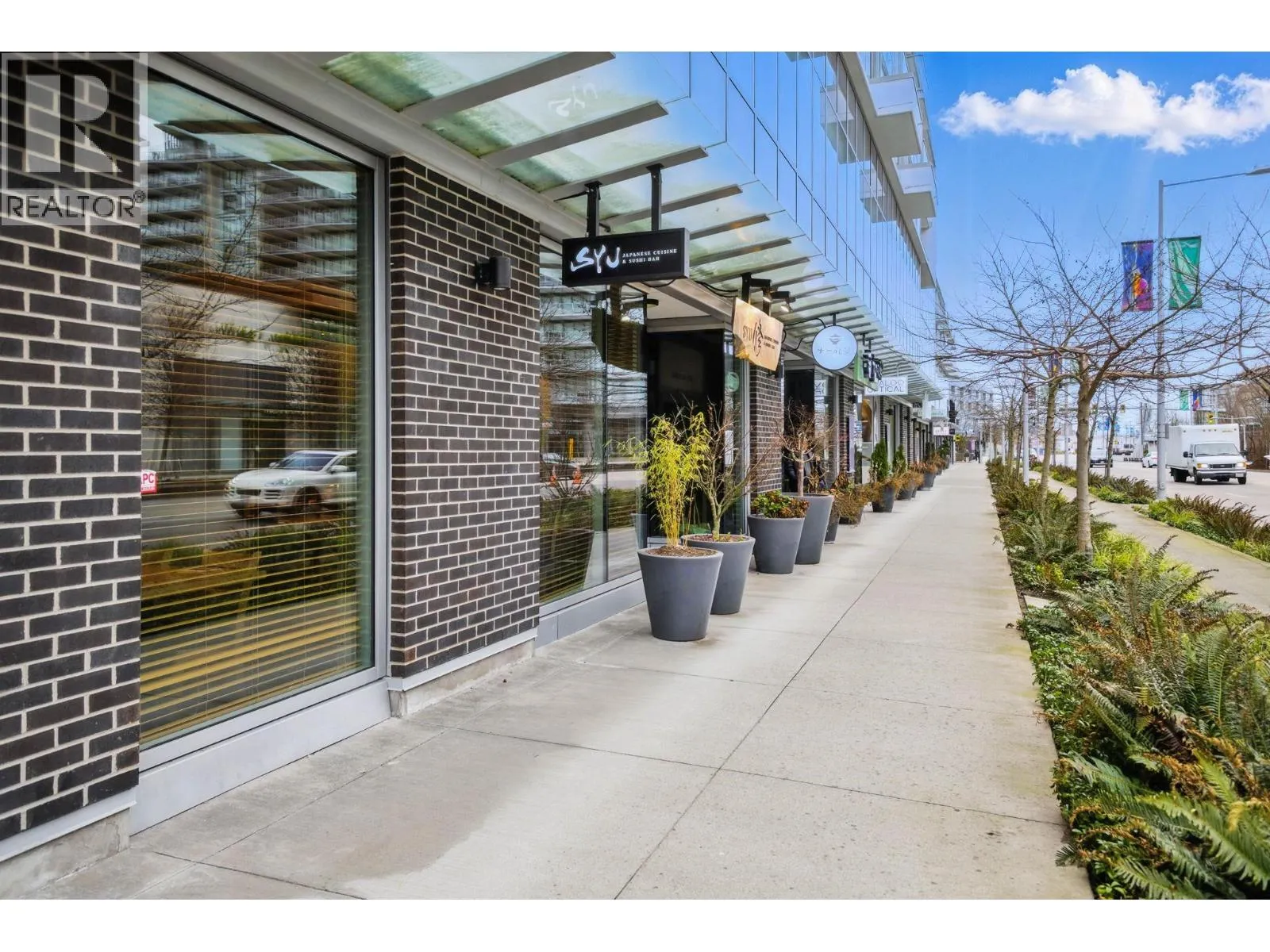 Welcome to one of the best commercial units in Richmond’s rapidly expanding Oval Village. This prime SW corner unit is conveniently positioned just above ground-floor retail, offering views & seamless access via stairs & elevators. Expansive ceiling heights and floor-to-ceiling windows ensure exceptional visibility, fronting T&T Supermarket and high-traffic Hollybridge Way. Features include a generous 1,183 SF patio, A/C, and