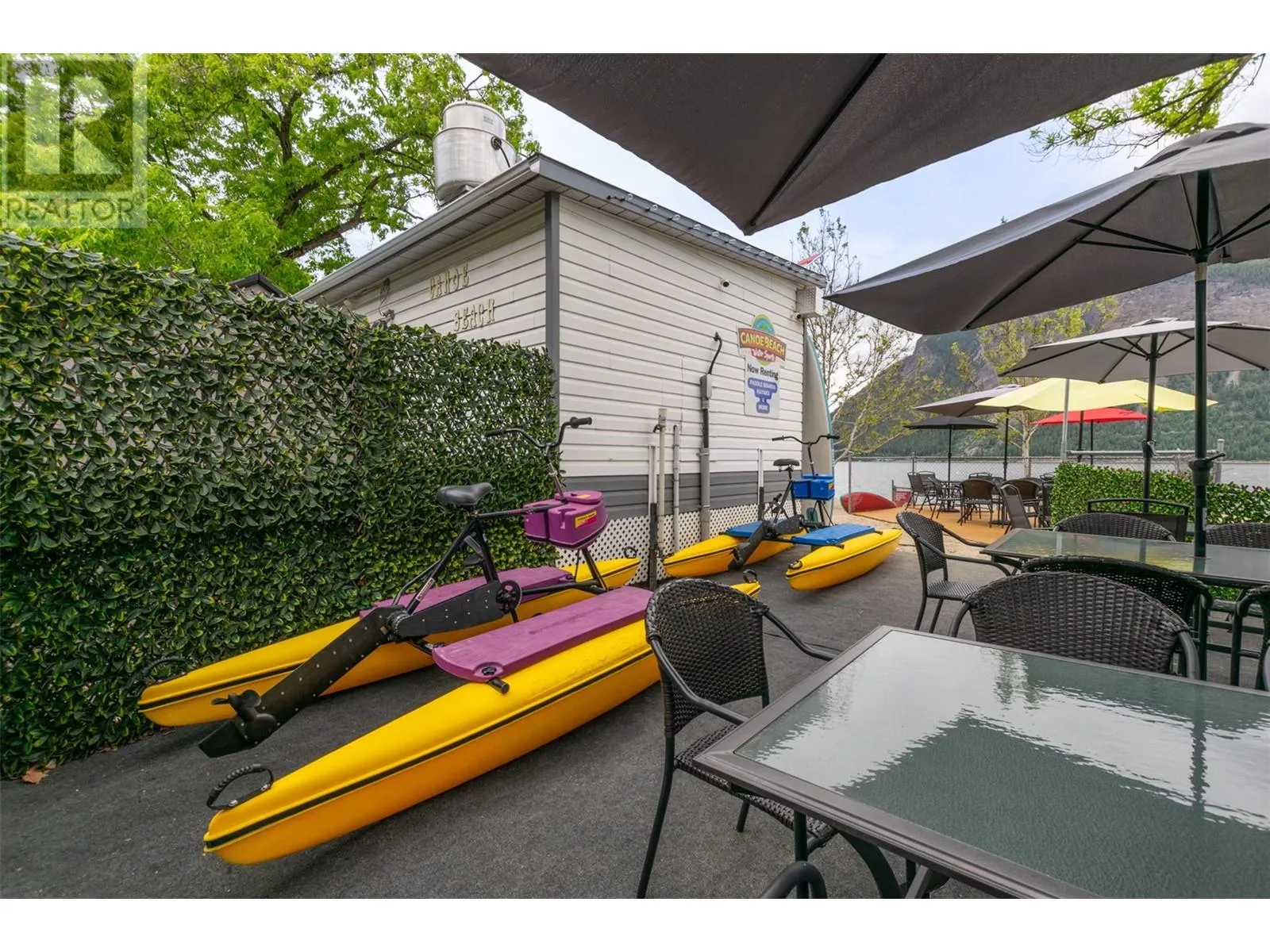 The charming, fully licensed Canoe Beach Cafe & Water Sports, a beloved establishment on scenic Canoe Beach overlooking Shuswap Lake, is now available for acquisition. This fantastic spot offers patrons a delightful experience, whether they are relaxing and enjoying the cafe’s food, ice cream, and beverages, or venturing onto the lake with rented water toys. The business boasts a fully
