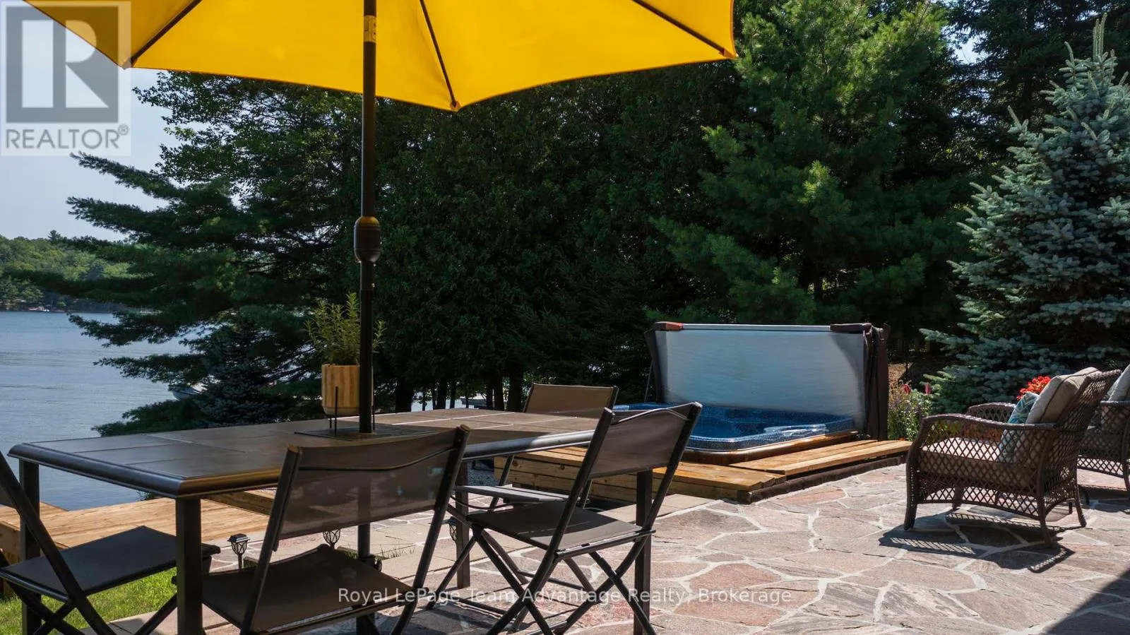 Pride of ownership is visible at every turn with this immaculately maintained property. Experience the unfailing beauty of the Georgian Bay on the sheltered shores of Dent Bay with this charming 1,172 sq.ft 3-bedroom, 1 bath brick bungalow. Enjoy the serene bayside water views from the wall of windows leading to a flagstone patio with a hot tub and outdoor