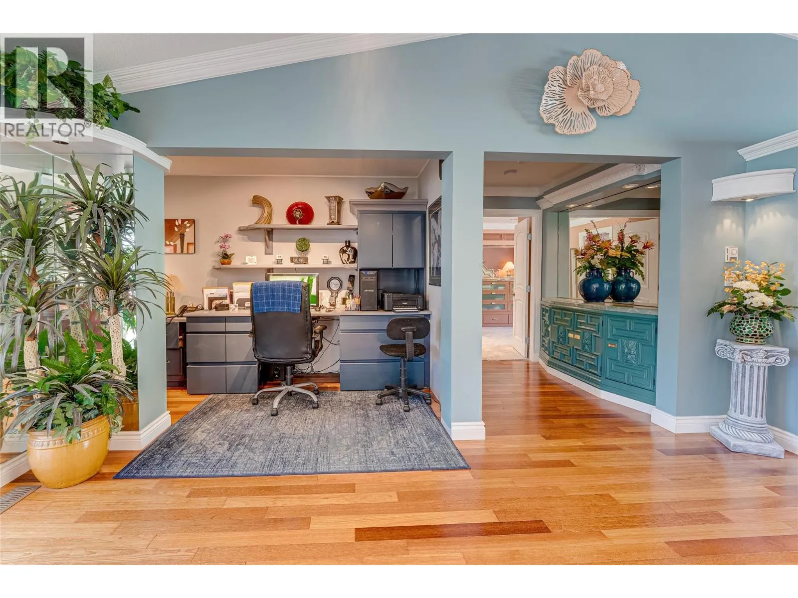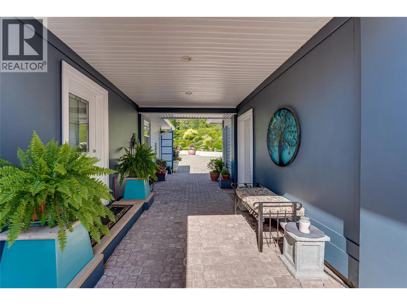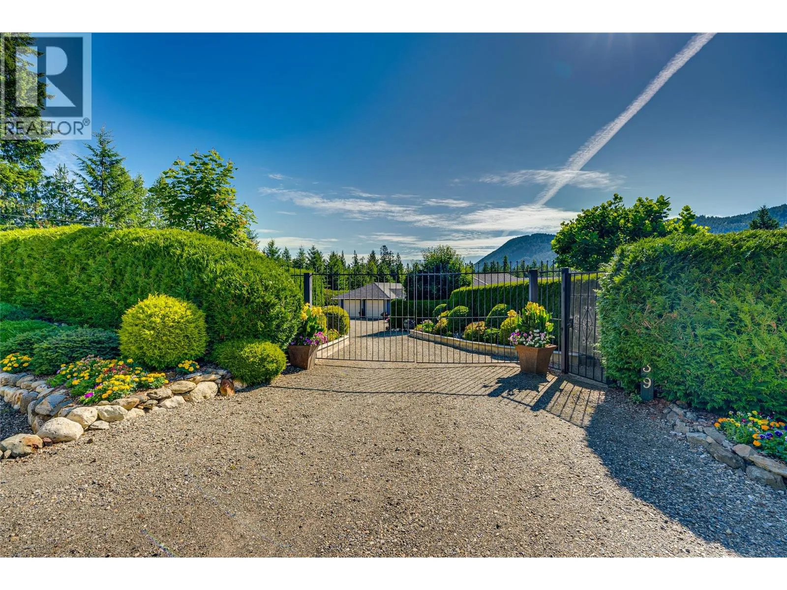 This magazine-worthy rancher on 2.47 flat acres is a rare blend of comfort, natural beauty and functionality. Fully enclosed by 1,300 ft of fencing with a 7′ black iron gate and walk-in access, this private retreat is a gardener’s dream featuring lush landscaping, flower gardens, rock and retaining walls, cement-faced garden beds and a seasonal creek along the rear. A