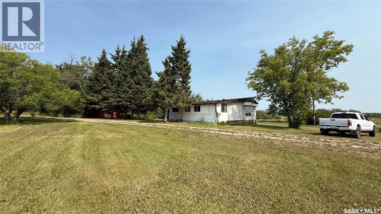 Located just 7 km west of Turtleford, this 20-acre property is a great starting-out property with room to build and expand. The centerpiece is a 2022 Quonset with integrated 1-bedroom, 1-bath living quarters featuring in-floor heating, fully furnished for a quick purchase. The living quarters are seamlessly attached to a spacious 32×32 shop with a 12×12 overhead door. The property