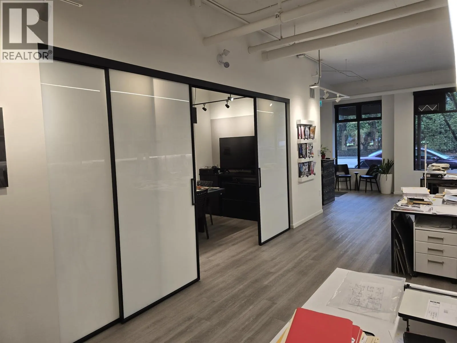 Beautifully built Interior Design Office located on W 4th Ave in Kitsilano available for lease. Professionally designed, modern, bright office space located on the main floor with lots of natural light and views to a park and streetscape. Open floor plan, with 1130 sq. ft. fully furnished with 6 generous workstations, beautifully appointed reception desk, kitchenette, bathroom,