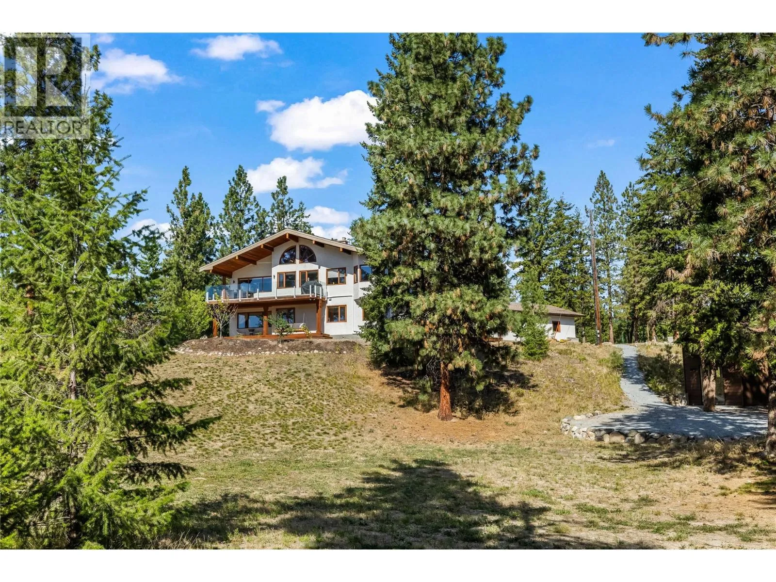+"PublicRemarks": "Luxury Acreage in Southeast Kelowna! This stunning 4.35-acre property offers unmatched privacy and elegance just minutes from Gallagher’s Canyon Golf Club. Meticulously renovated, this 3-bedroom + den, 3-bath home features soaring wood-vaulted ceilings, rich new hardwood floors, and a cozy gas fireplace that sets the tone for warmth and sophistication. The gourmet kitchen is a chef’s dream, complete with updated appliances, ample counter space, a breakfast bar, and an adjoining servery with a second fridge and generous cabinetry. The thoughtful design continues with a spacious mudroom, convenient laundry room, and abundant storage, including a huge crawlspace. Unwind in the sauna, enjoy the bright reading nook surrounded by windows, or utilize the loft for extra guests or creative space. The luxurious primary suite boasts a spa-like ensuite with a soaker tub and standalone shower. Outdoors, enjoy forest and mountain views, a gated driveway, an attached 3-car garage, a detached shop, and ample parking. This property is a rare opportunity to embrace both elegance and tranquility. (id:62650)"