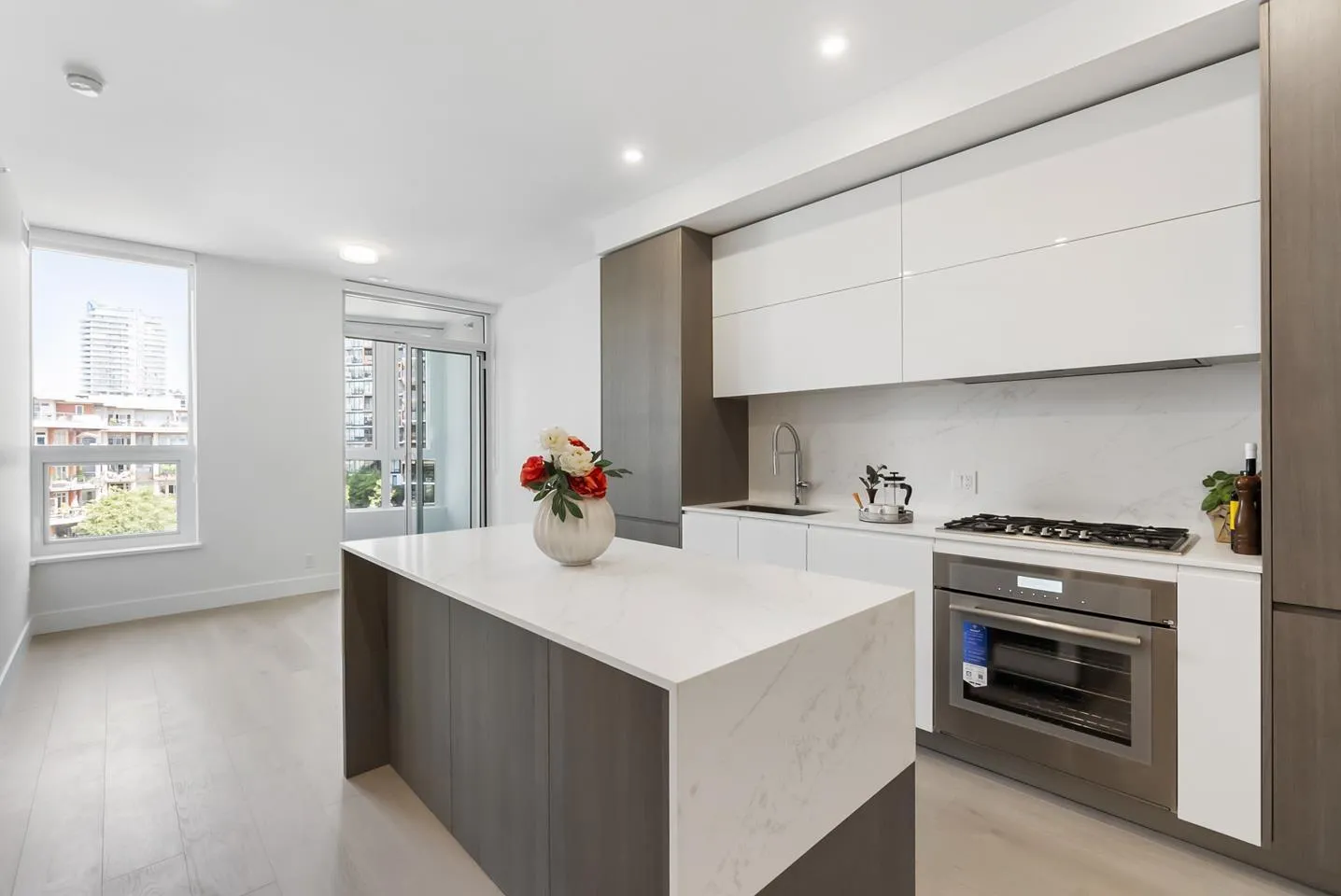 Experience luxury coastal living at Monaco by Solterra in Uptown White Rock! This brand new air conditioned 1 bed+den, 2 bath home offers 725 sq ft of upscale design just 10 minutes away from the beach. Features include engineered hardwood, luxury Thermador appliances, stone counters & backsplash, beverage cooler, solarium, & a den perfect for guests or office space. The