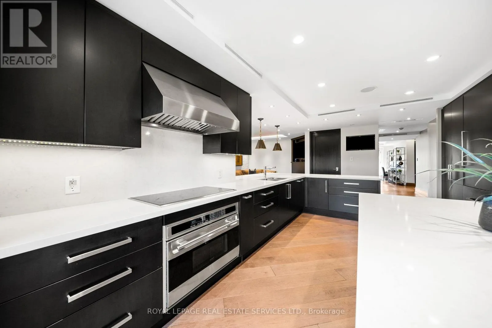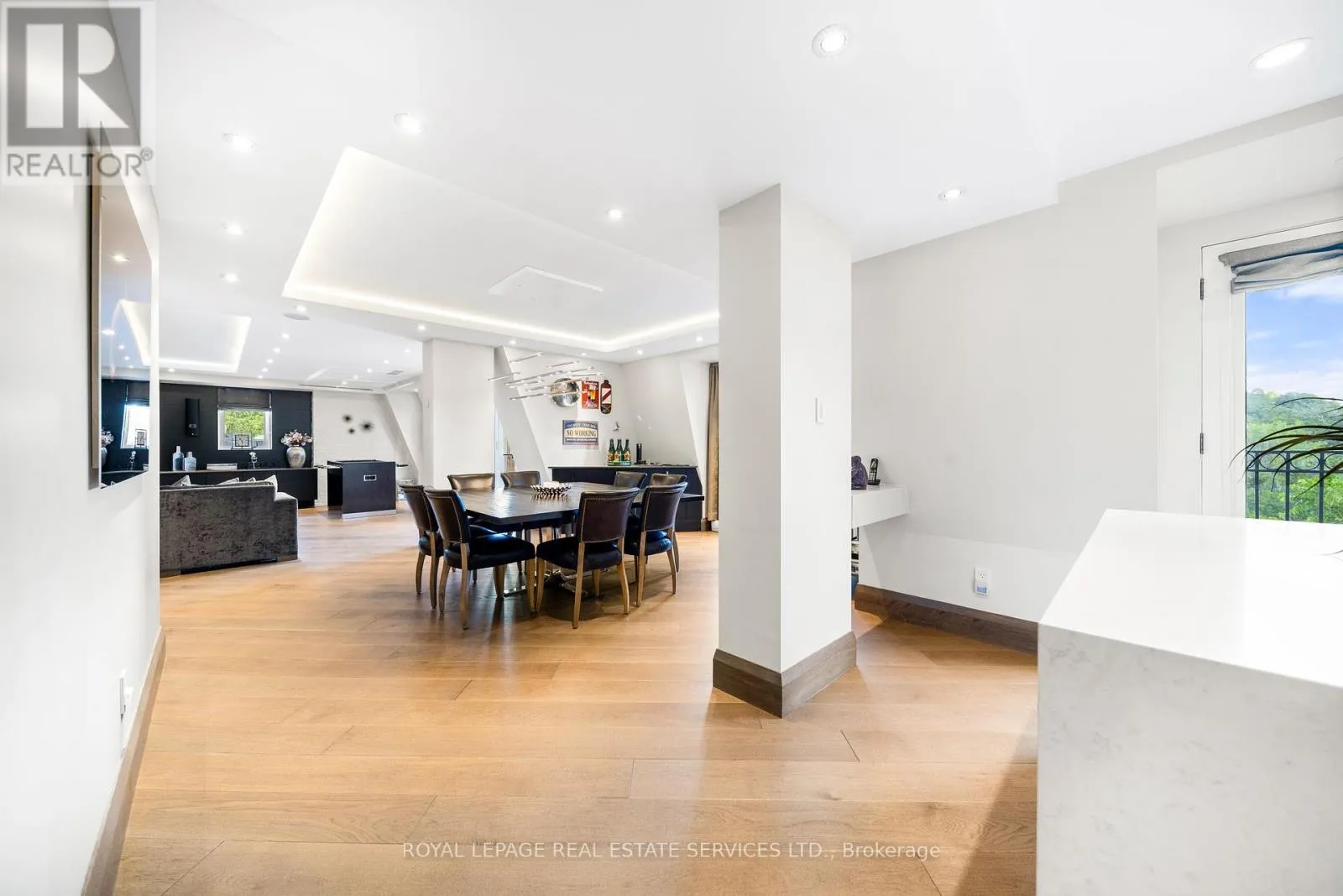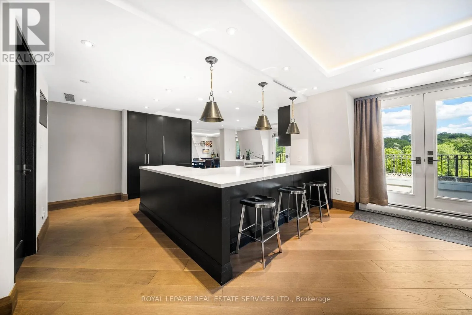 This rare full-floor penthouse at The Riverstone offers 2,959 sq. ft. of living space with sweeping views of both the city skyline and Humber River. Direct elevator access opens to a bright, functional layout featuring engineered hardwood throughout and custom-built cabinetry. The kitchen includes premium appliances such as a Wolf cooktop and oven, Falmec hood, and custom millwork. The