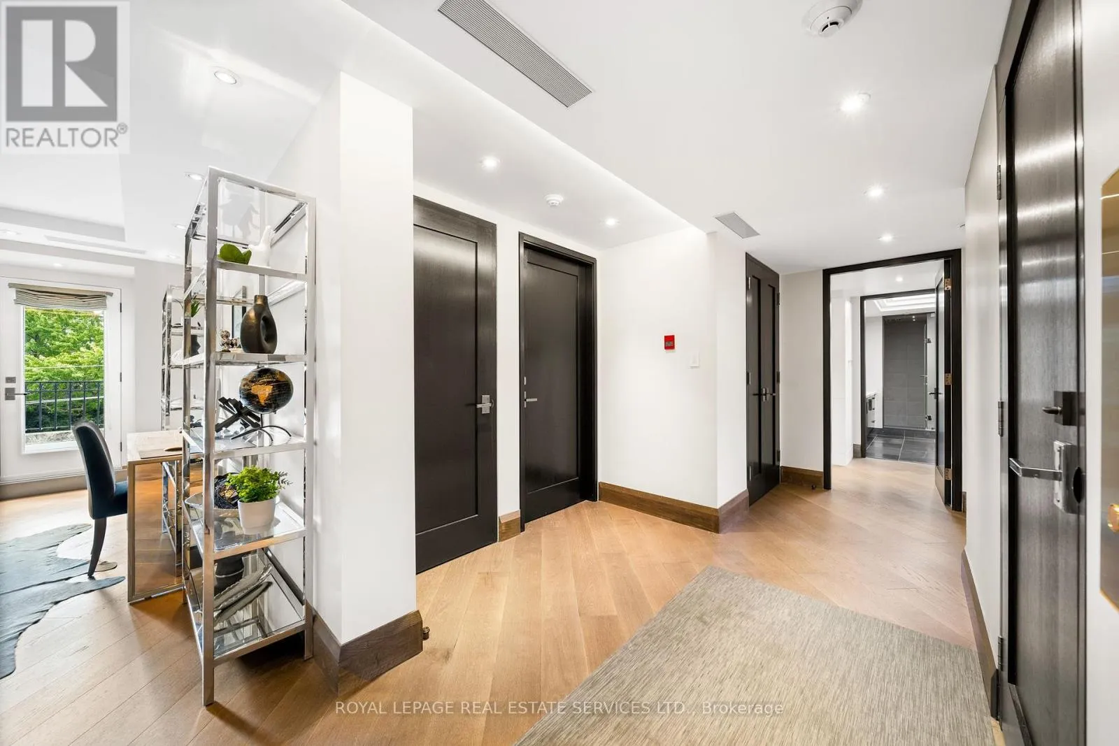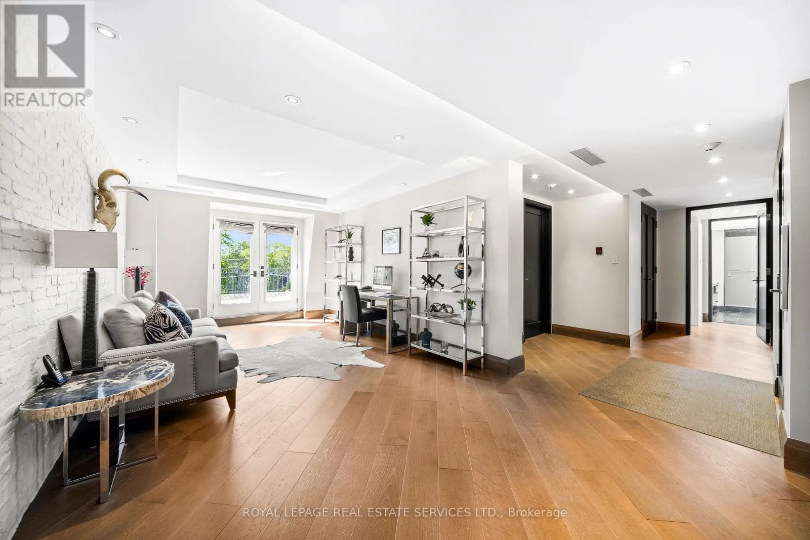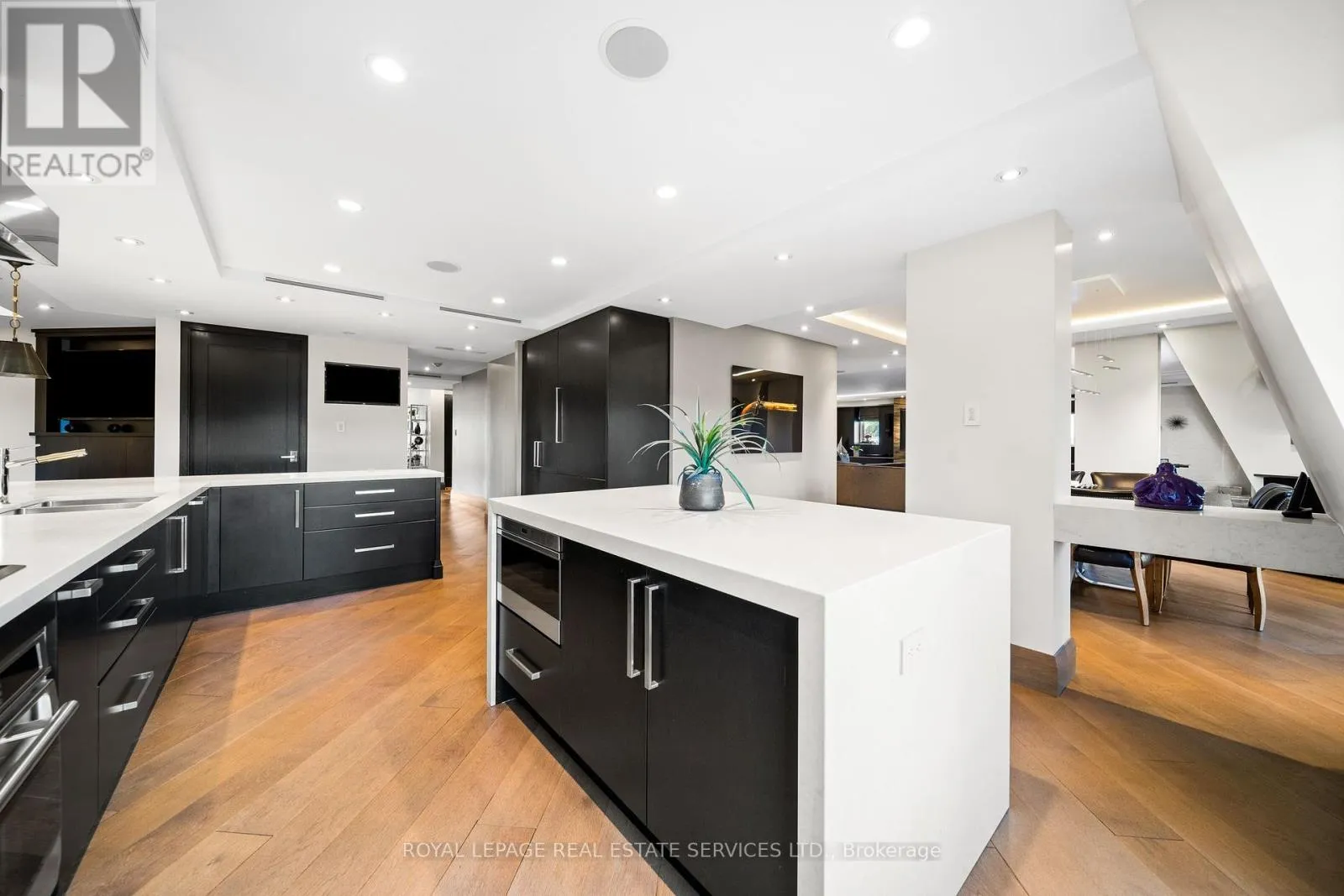 This rare full-floor penthouse at The Riverstone offers 2,959 sq. ft. of living space with sweeping views of both the city skyline and Humber River. Direct elevator access opens to a bright, functional layout featuring engineered hardwood throughout and custom-built cabinetry. The kitchen includes premium appliances such as a Wolf cooktop and oven, Falmec hood, and custom millwork. The