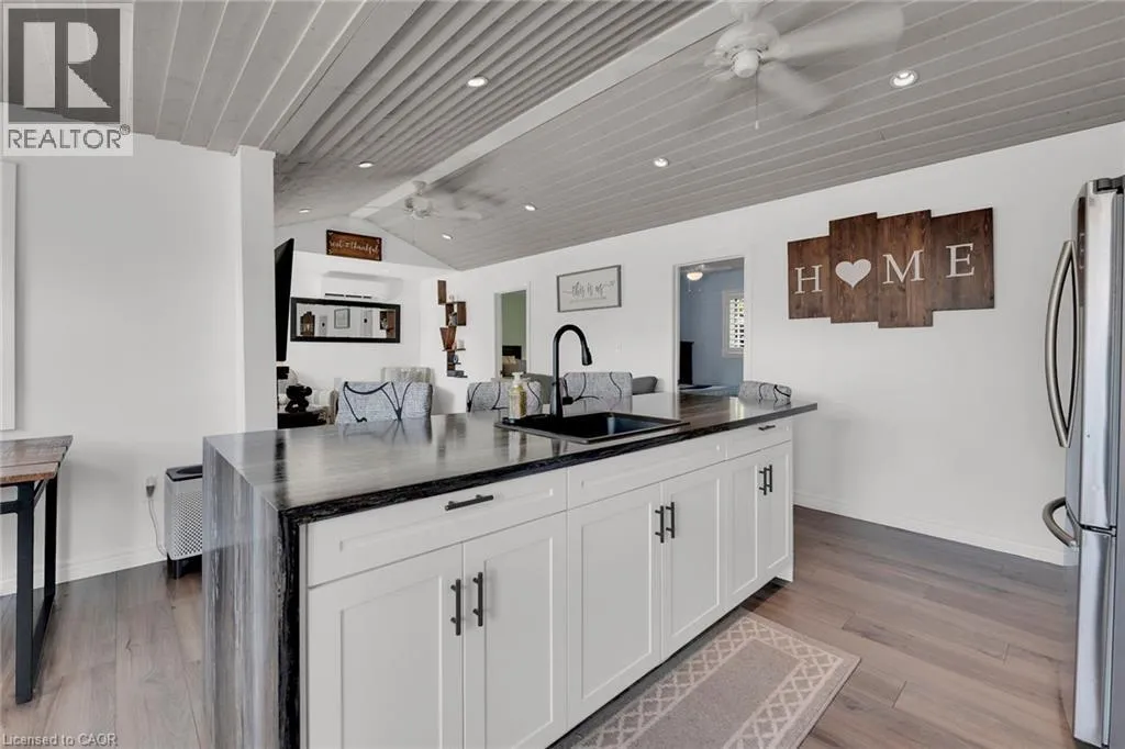 +"PublicRemarks": "Looking for your own little piece of paradise?? You need this beautiful Lake Erie Home! Exquisitely decorated open concept main living area with vaulted tongue & groove ceiling, two bedrooms, plus recently renovated three piece bath with gorgeous glass shower, wonderful spacious laundry room and pantry closet plus utility room. The main room features many bright lake facing windows, large kitchen island, cozy propane fireplace and tasteful modern flooring. California shutters finish off the windows perfectly. There are five different lake views from the front room, and your view out of the back is trees and fields. The rear yard feels like a resort with lots of decking, pergola, gazebo, fully fenced yard and many mature trees. A garden shed, plus a workshop in the back yard - both have electricity and the workshop is insulated - would not take much to heat it. Large asphalt parking area - room for 5 to 7 cars, plus an extra parking space on the other side of the driveway. Your new Lake Erie home includes a deeded right of way directly across the road - 10 ft wide, so access the beautiful waterfront. Heated and cooled by efficient heat pump system, plus a propane fireplace for chilly nights. 2000 gallon cistern (plus an additional cistern for watering flowers) and 2000 gallon holding tank. Great potential for short term rental in this area as well.. take advantage of the beautiful beaches, and the small town of Dunnville close by. Stop procrastinating - live the dream at the Lake! (id:62650)"