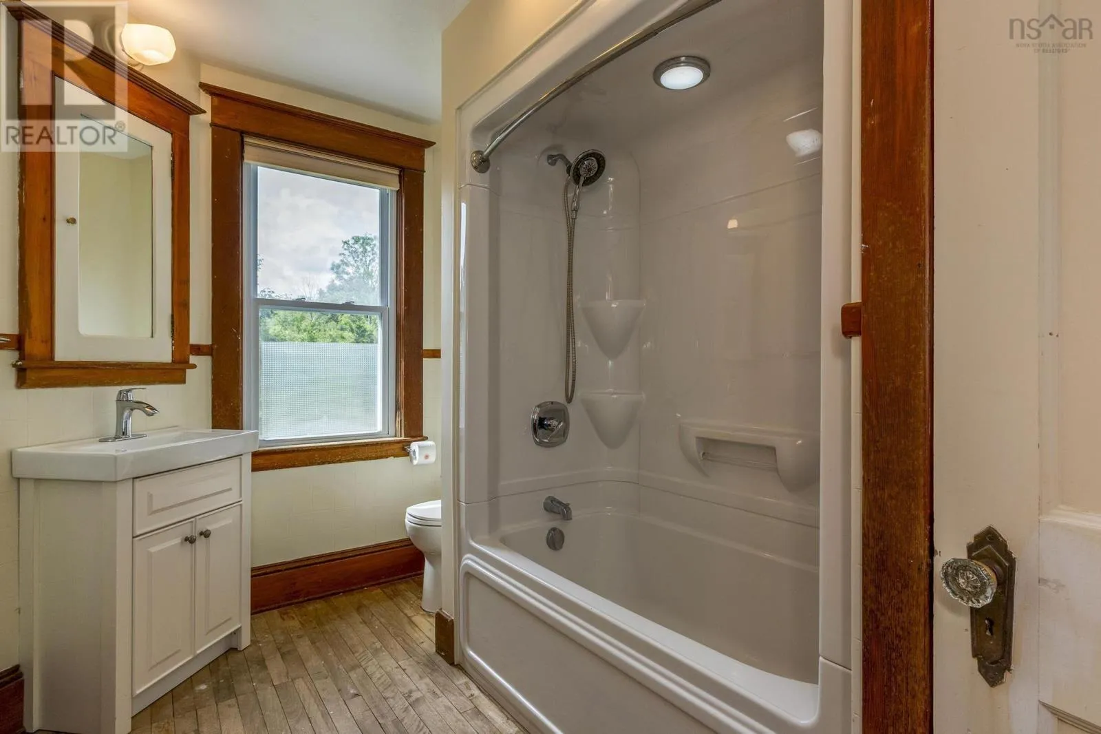 Step into timeless charm with this beautifully maintained century-old two-story farmhouse in the South Shore community of Chester Basin. This home offers over 1,600 sq. ft. of inviting living space. Nestled on just under an acre with mature trees and a private backyard, this property perfectly blends history, character, and modern updates. Inside, youll find soaring 8-foot ceilings, original hardwood