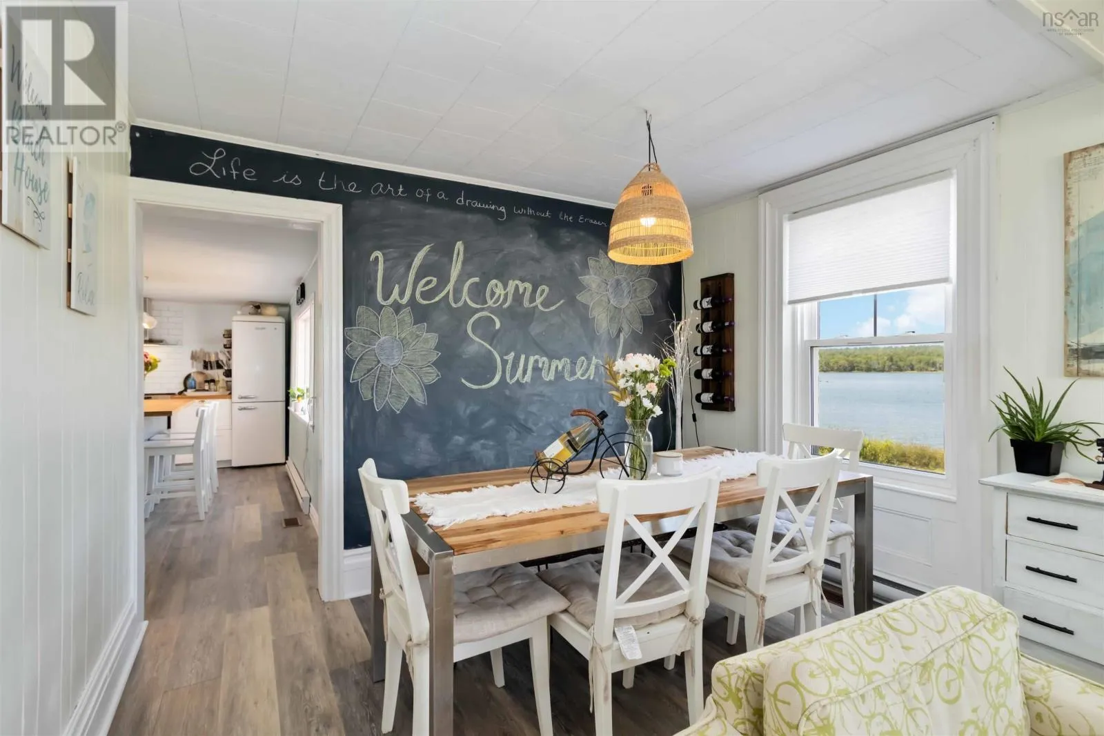 Perched on the shores of “The Pond” in the picturesque community of Port Mouton, this over 100-year-old charmer offers the perfect blend of seaside character and modern comfort. Set on nearly 4 acres, inside youll find a welcoming layout brimming with personality, sparkling updates, and the warmth of electric baseboard heat while expansive windows frame breathtaking water views from every