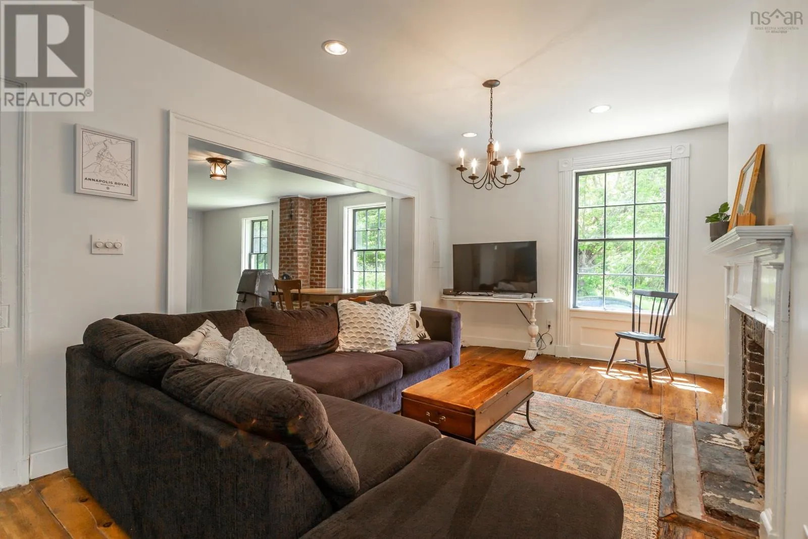 Historic c1780 Colonial Estate with panoramic views of the Annapolis River in Tupperville, Nova Scotia. Set atop nearly 30 pastoral acres in the heart of Tupperville, this distinguished Colonial residence offers a rare opportunity to own a piece of Canadian history. Known as the ‘Delancey Estate’, this remarkable home overlooks sweeping farmland, the winding Annapolis River, and the mountains beyond