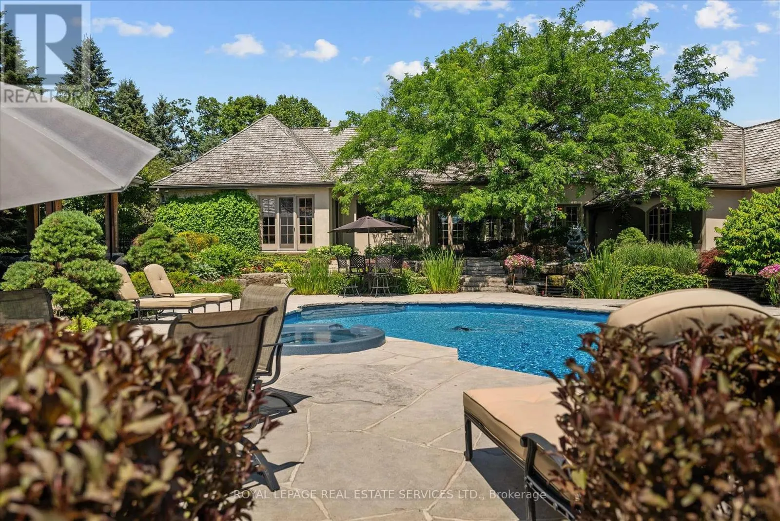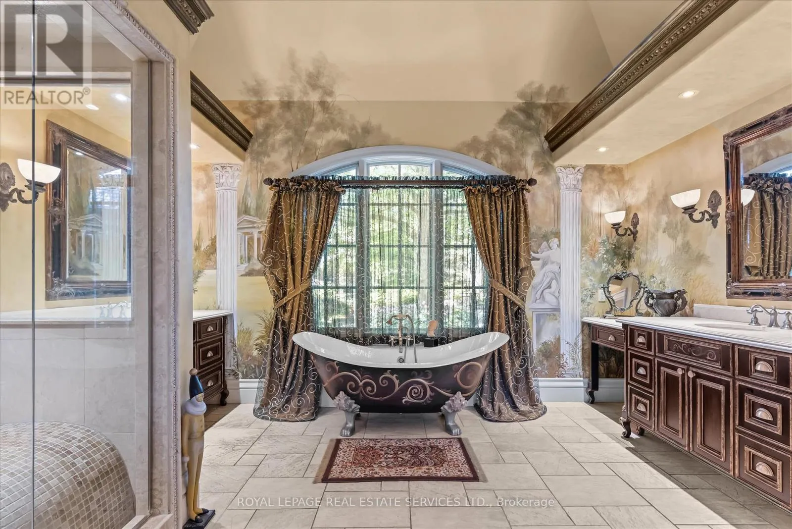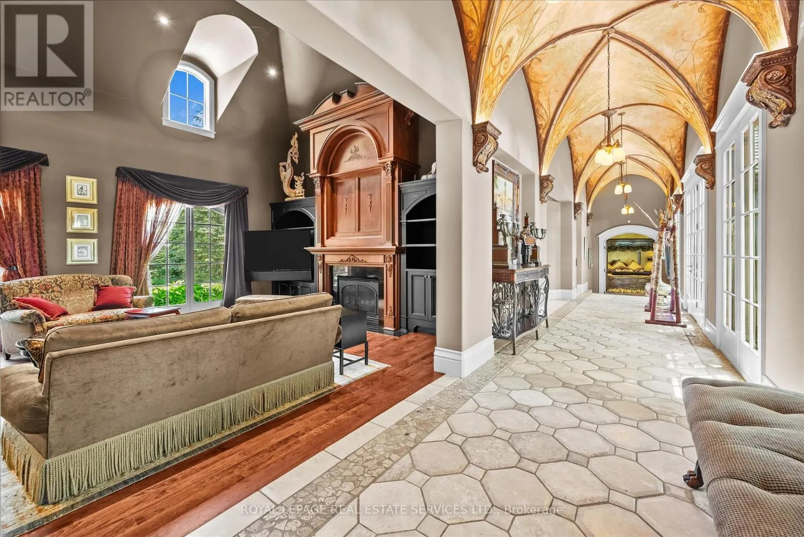 STONEGATE MANOR – AN ARCHITECTURAL MASTERPIECE! Nestled on 2.5 acres of manicured grounds behind private gates in prestigious Whispering Pines Estates, Stonegate Manor is a palatial estate crafted by an award-winning builder. A picturesque pond with fountain greets you at the foot of the driveway, setting the tone for timeless French Manor-inspired elegance. A grand foyer with 17.5-foot cathedral ceiling
