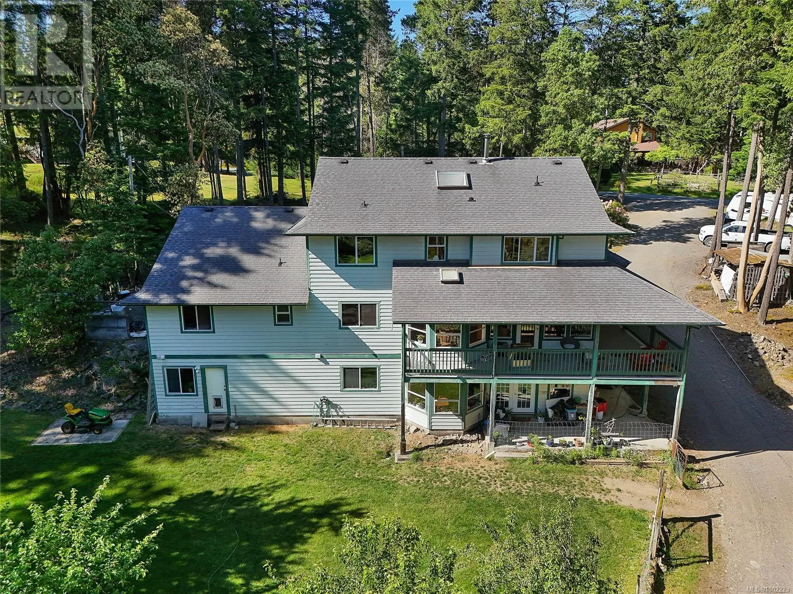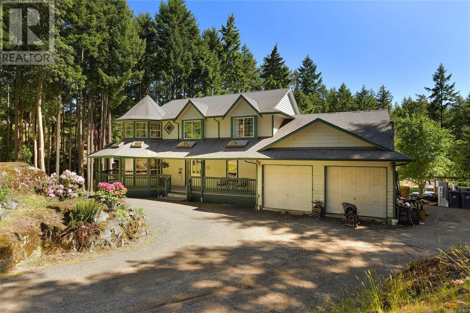 Large family home with revenue suite sited on a picturesque 2 acre lot just a short drive to Victoria. This home was custom built by the current owners in 1994 and offers almost 4000 sq ft of finished space (including a 2 bedroom rental suite) plus a large double garage. The level entry main floor features an open country kitchen
