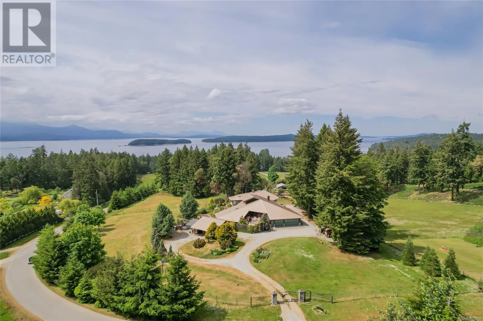A Striking Residence in Pringle Farm Estates-Bathed in year-round sunlight, this remarkable 2.4-acre property is nestled within the prestigious rural community of Pringle Farm Estates. The dramatic timber-frame architecture of this 4,157 sq. ft. home offers both bold design and inviting livability, with soaring spaces, abundant natural light, and breathtaking dual ocean views—punctuated by unforgettable sunsets that inspired the home’s
