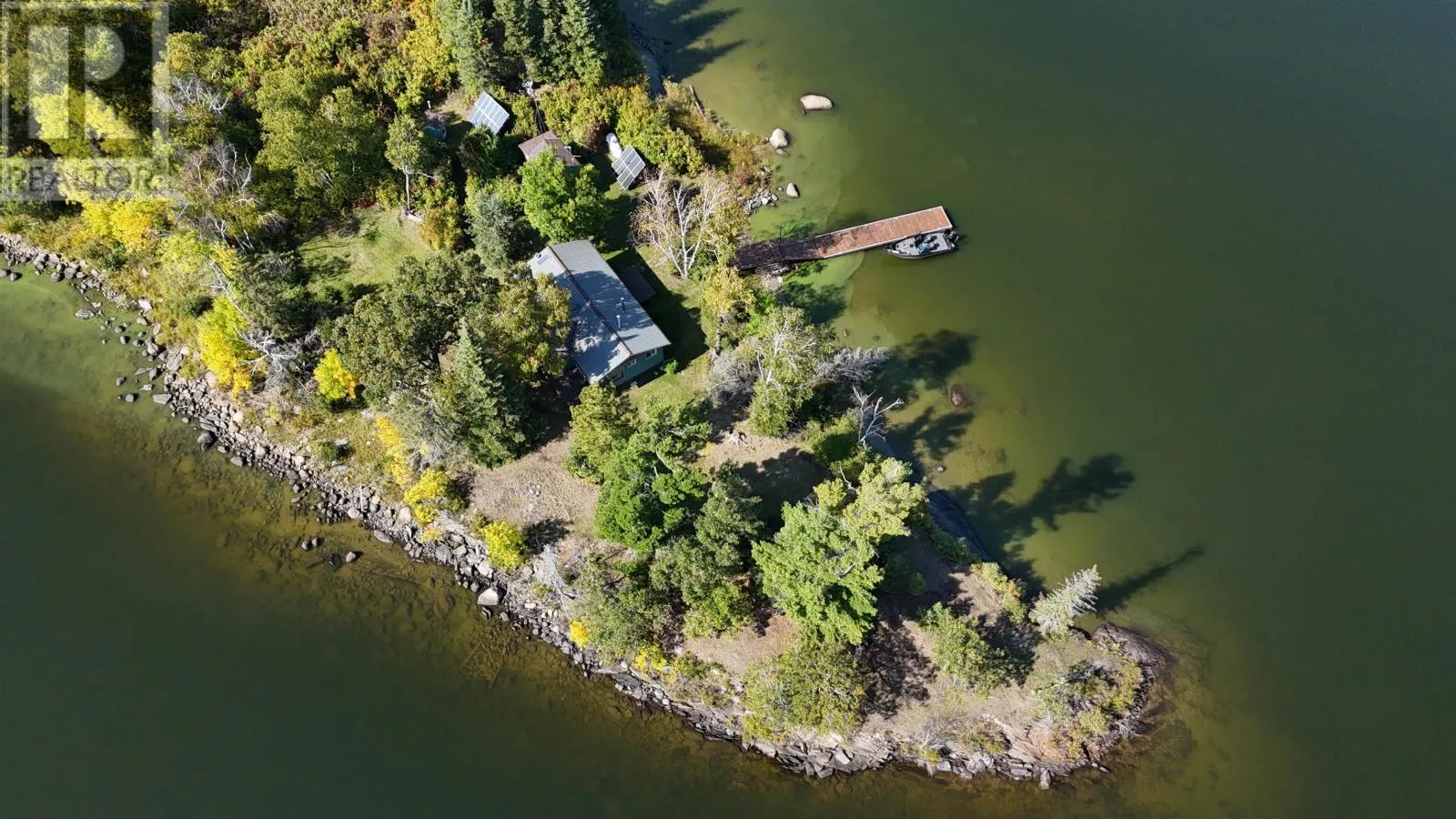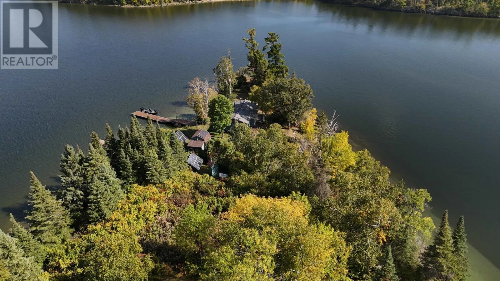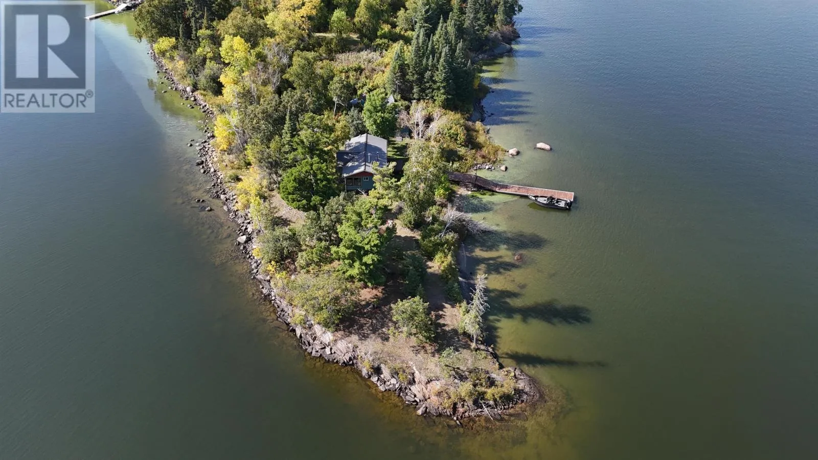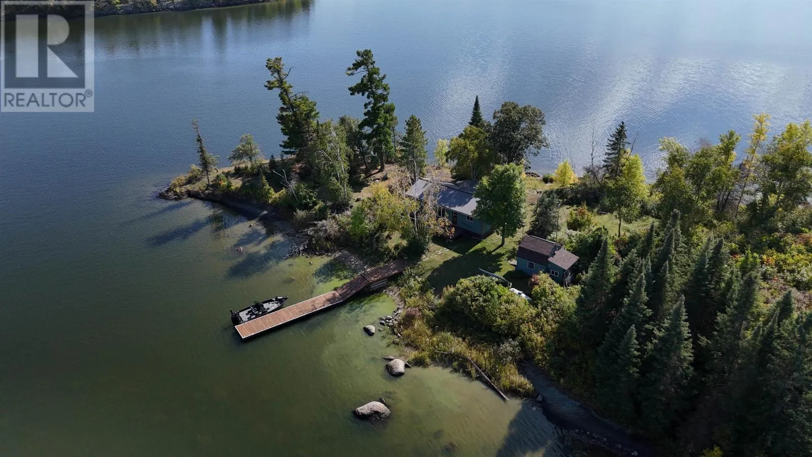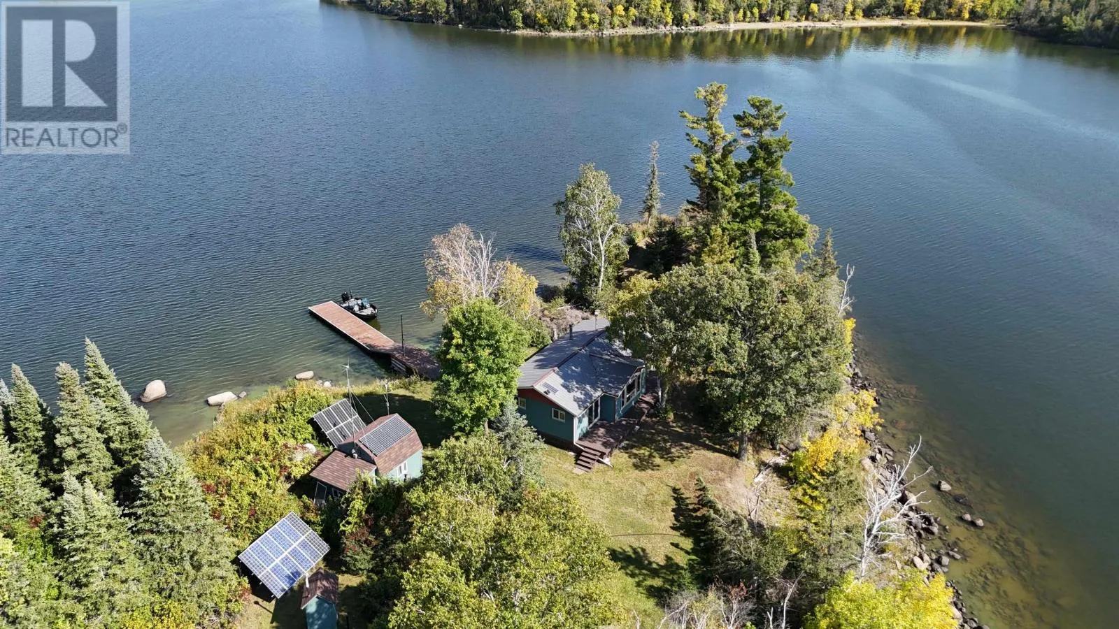 Surrounded by water on nearly all sides, this rare offering boasts 1,161 feet of frontage with almost 360° of waterfront views. Set on 2.1 acres of titled land in unorganized territory, this is the ultimate private retreat on the desirable east side of Ptarmigan Bay. Enjoy the convenience of a new sheltered dock, framed by sandy beaches on both