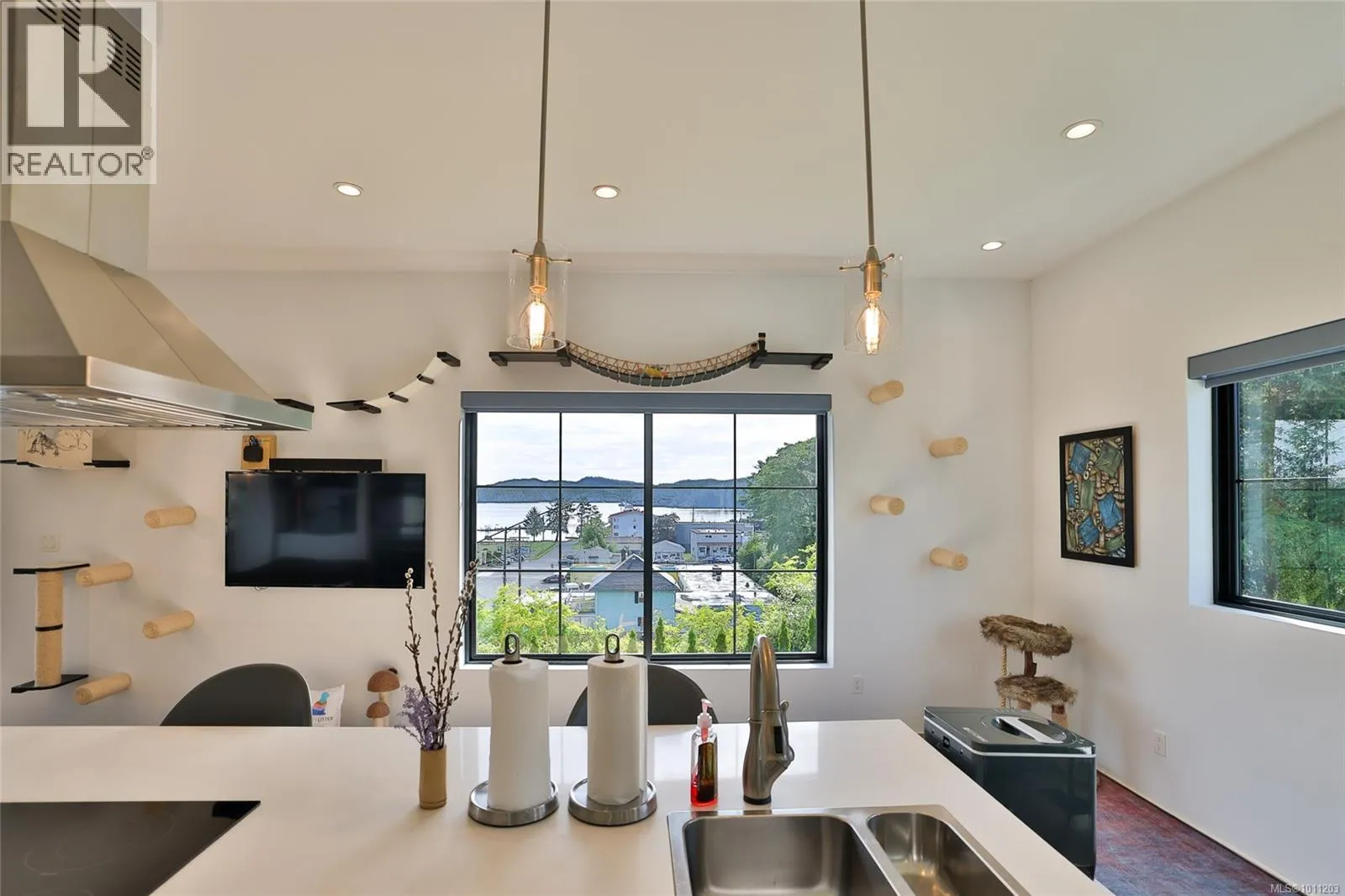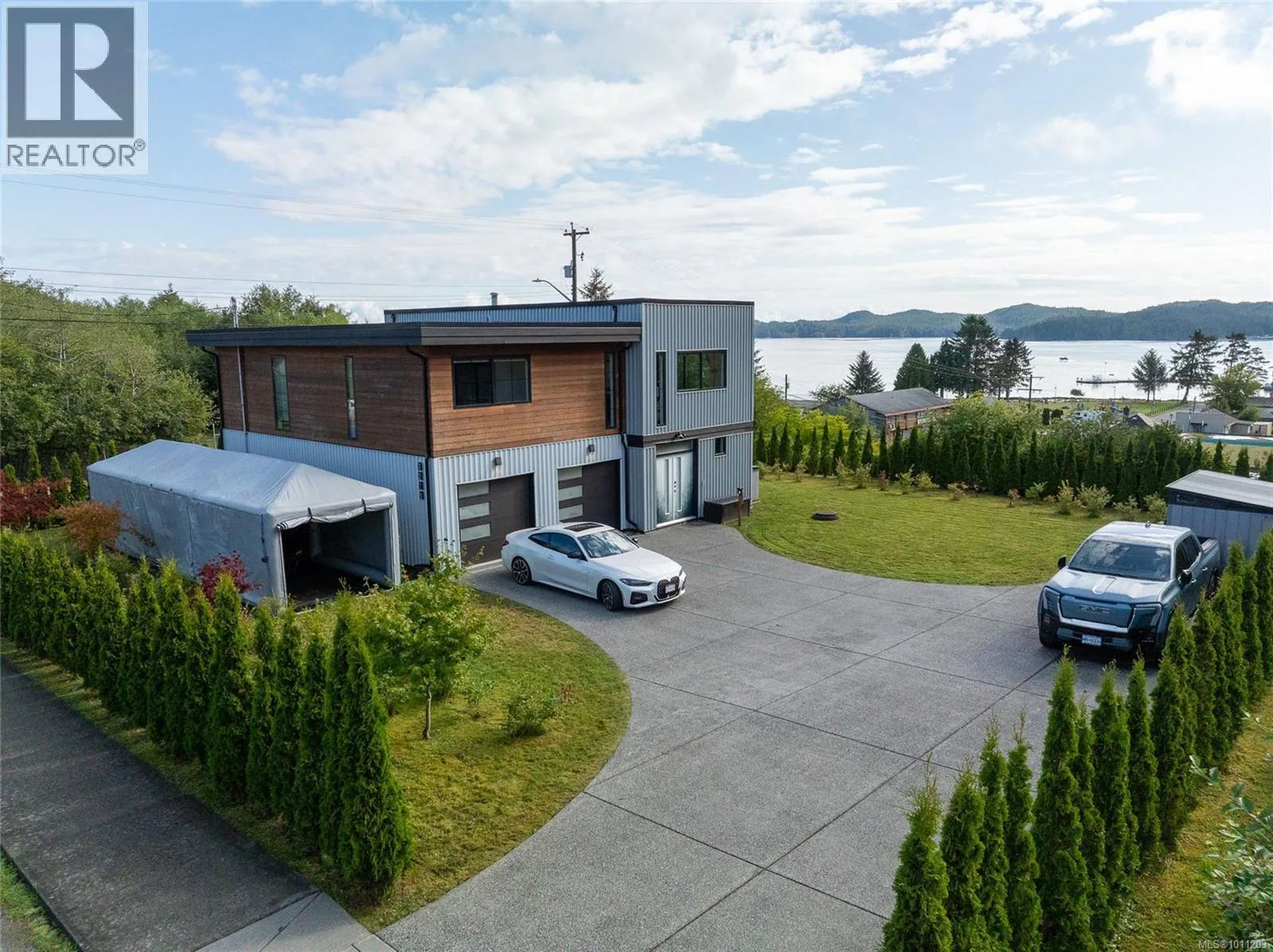 Perched on the top of Pelzer’s hill is this fully furnished, ultra modern ocean view home in walking distance to everything downtown Port Hardy. 3 years remaining on home warranty for this 2 bedroom plus den, 3 bathroom, 3 car garage Aspire Custom Design home. The lot below is included in this sale, to ensure your privacy and unobstructed view