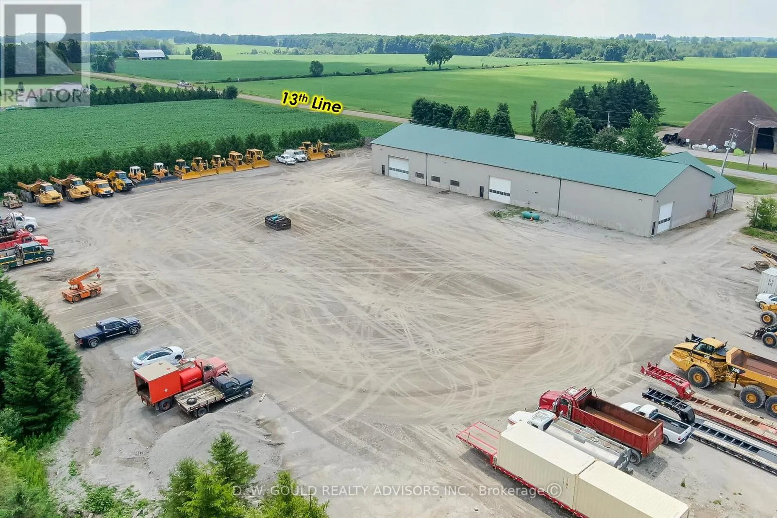 +/- 5.16 acres of Industrial/ Commercial Lot in East Garafraxa. Large portion of Storage Land, graveled. +/- 13,800 sf freestanding Industrial building with a very useful configuration, including shop and indoor storage. Rare M1 zoning allowing outside storage, transportation depot and more. Suitable for Contractor’s yard as well. 5 Year VTB Possible for qualified Buyers. 5 Drive-in doors: 1 x