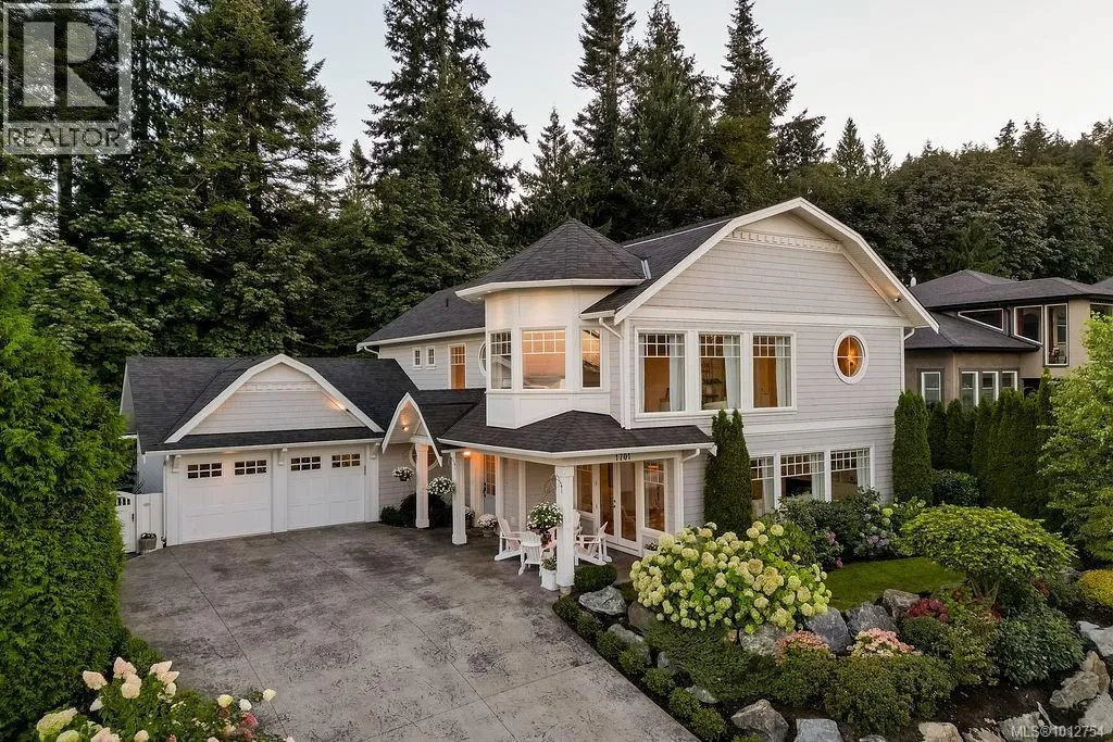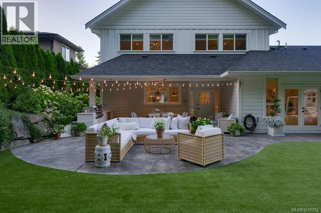 +"PublicRemarks": "Nestled on a quiet cul-de-sac, this stunning coastal family home is surrounded by an abundance of green space. Steps away from a network of hiking trails and breathtaking viewpoints. Thoughtfully designed and styled by the owners of Nest and Nook Housewares and Design, every detail has been carefully thought out. This home features 4 spacious bedrooms and 5 bathrooms. On the top floor you will find the Primary bedroom with a stunning 4 piece en-suite, spacious walk in closet, and beautiful views of the sunrise, Sidney Spit, and Mount Baker. The other upper two bedrooms each have their own full bathrooms, and to complete the top floor the fully appointed upstairs laundry area makes family life easier. The functional floor plan allows for a growing family with an additional private bedroom and its own bathroom, perfect for in-laws, guests, or a nanny. On the main floor, the magazine worthy chef's kitchen is equipped with a Dacor double oven, 2 dishwashers, a large butler pantry, and leads out to a large covered back patio with outdoor kitchen. This is the perfect home for hosting large gatherings or intimate family dinners. The dining and great room are also spacious with large windows, taking in the view of the ocean and mountains. The basement area is fully finished with a play area, theatre area, bar area, and workout room. The garden area is beautifully landscaped with mature plants and full of sunshine. The backyard is practically maintenance free with mostly synthetic lawn and partial playground that can easily be converted to a full synlawn. The back yard provides a great play area as well as an entertainment area and is fully fenced for Fido. This spectacular home backs onto lush green space offering additional privacy and a playground for both children and adults. All this in a dream location, near Dean Park, Coles Bay Park, beaches, and near schools and rec centre. Certainly one of the finest homes offered in this area. (id:62650)"