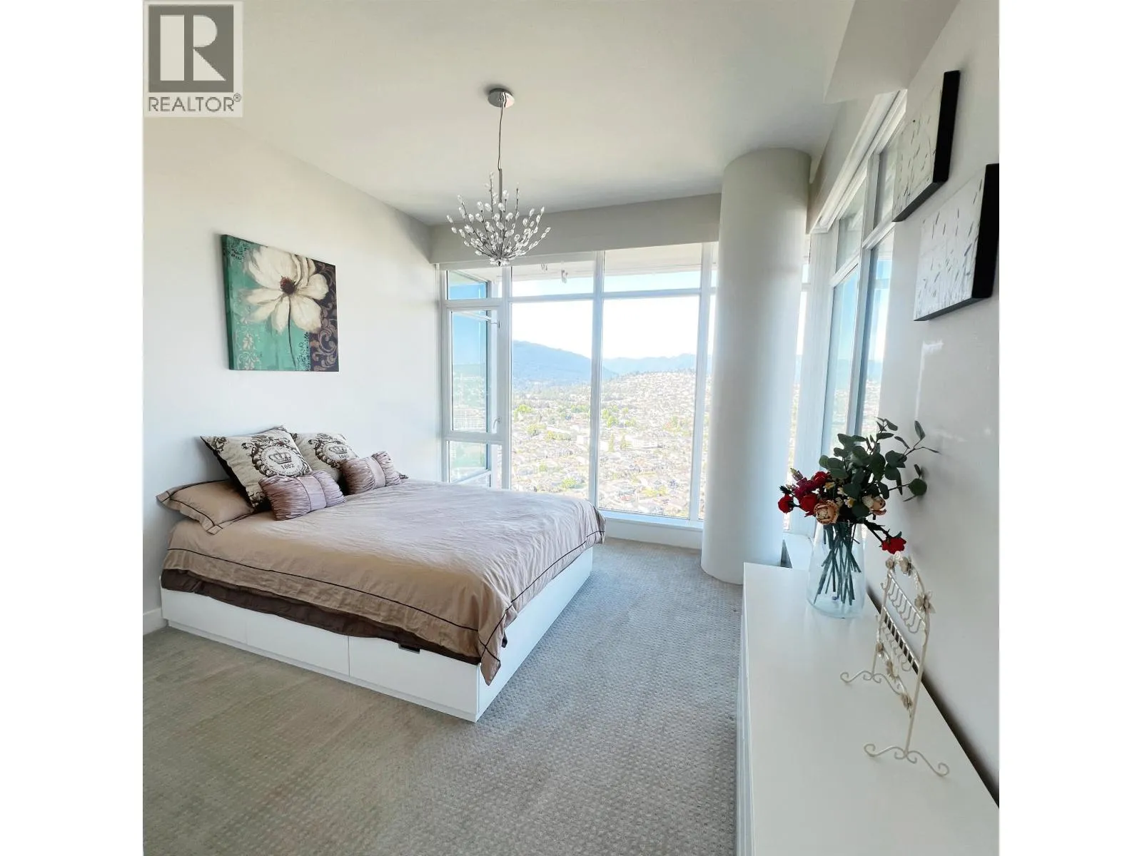 Beautiful 41st floor sub-penthouse corner 2 bed home has the most spectacular 230 degree view in Brentwood. This exceptionally well-kept 2 bed/2 bath home features a thoughtful layout that maximizes privacy between the two bedrooms. The gourmet chef’s kitchen features gas stove, full-size stainless steel appliances and quartz countertops. With spa like baths, A/C and 9ft ceilings & 1 parking