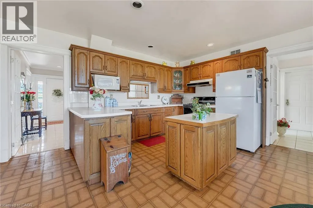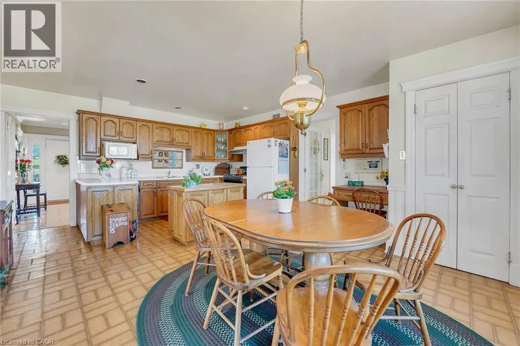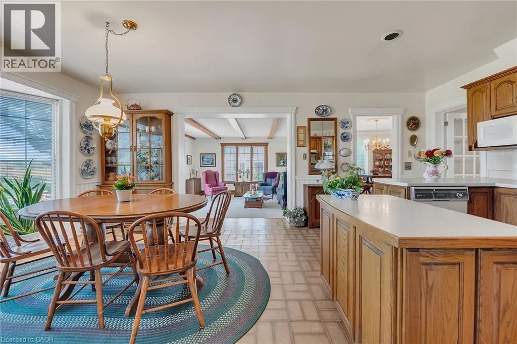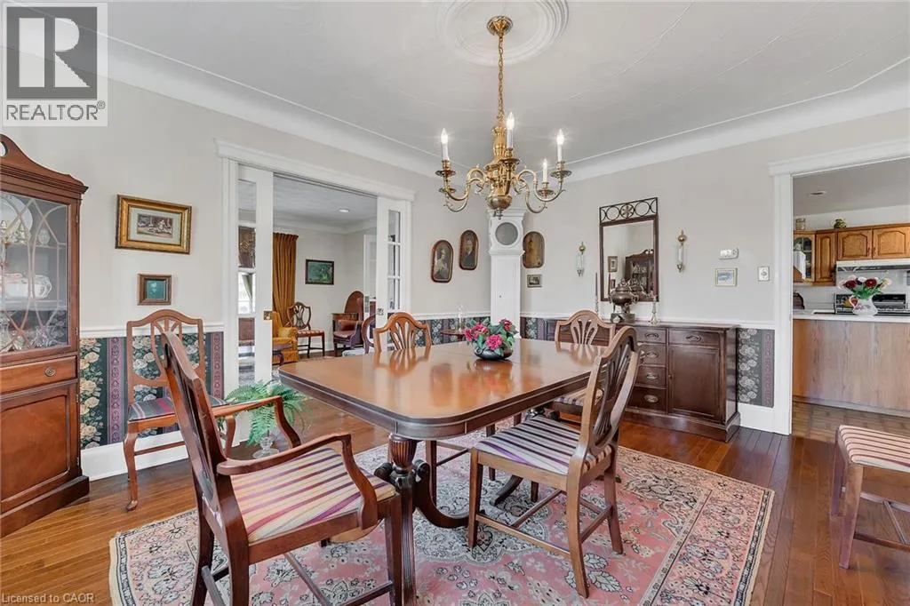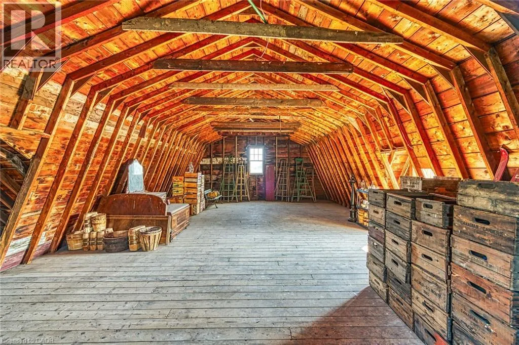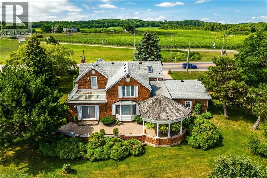 & re-built in 1990 + 1949 built 1440sf versatile barn/shop reflecting pride of lengthy ownership enjoying 2 road frontages -surrounded w/8 acres of tender fruit orchards & fertile vegetable soil. Follow King St E & take round-about into triple car concrete driveway – leads to quaint covered porch providing stately access to this lovingly cared for home introducing 2774sf of timeless décor highlighted w/ornate mouldings & original wood work. Ftrs grand front foyer entering central vestibule incs multiple French doors accessing formal dining room, living room enhanced w/picture window & n/g fireplace, sunken family room incs patio door WO & 2pc bath – continues to “country sized” kitchen incs roomy dinette – completed w/convenient MF laundry room, 4pc bath & direct entry to attached 1.5 car garage incs staircase to 1188sf unfinished basement. Classic period wood staircase ascends to spacious upper level opulent hallway offering entry to elegant primary bedroom w/private 14×14 balcony walk-out, 2 additional bedrooms & lavish 4pc bath. Gleaming hardwood flooring, coved ceiling & multiple walk-outs to impressive paver stone pavilion entertainment court yard compliment the home w/distinguished flair. Separate driveway leads to solid post & beam built barn boasting 3 roll-up doors, concrete flooring, hydro, produce cooler (not operational), 2nd bay & full functional loft. Extras – roof-2025, furnace-2015, AC-2019, 200 amp hydro, quality windows. Spectacular, diverse property appeals to Investors, Expanding Tender Fruit Farmers, Winery Entrepreneurs or Perfect Place to Live & Raise a Family. (id:62650)