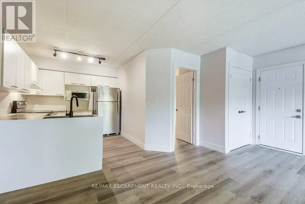 Terrific opportunity in Headon Forest, Burlington! This bright, newly renovated 1 bedroom + den condo features brand new vinyl flooring, a modern updated bathroom, new washer & dryer, and fresh paint throughout. The open-concept layout includes a spacious bedroom and a versatile den-perfect for a home office, guest space, or workout room. Enjoy the ease of a ground-level entrance, making