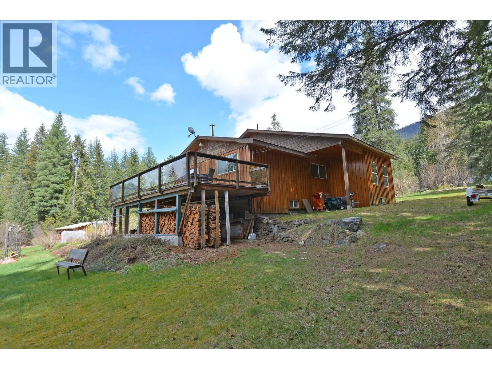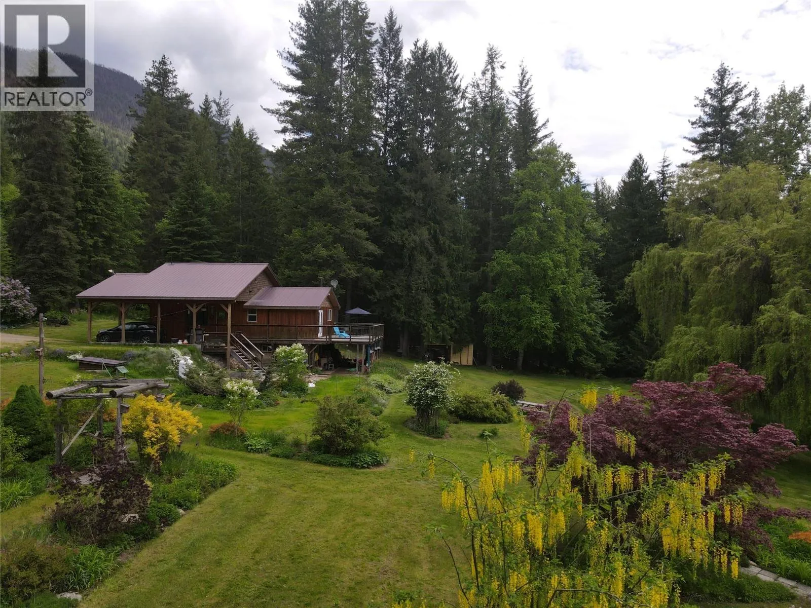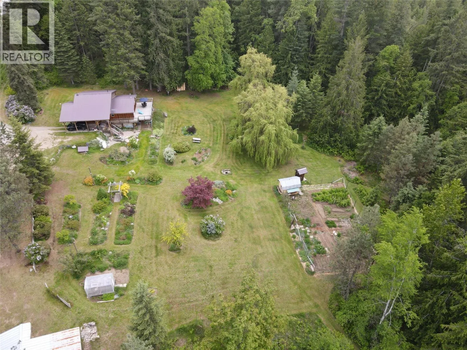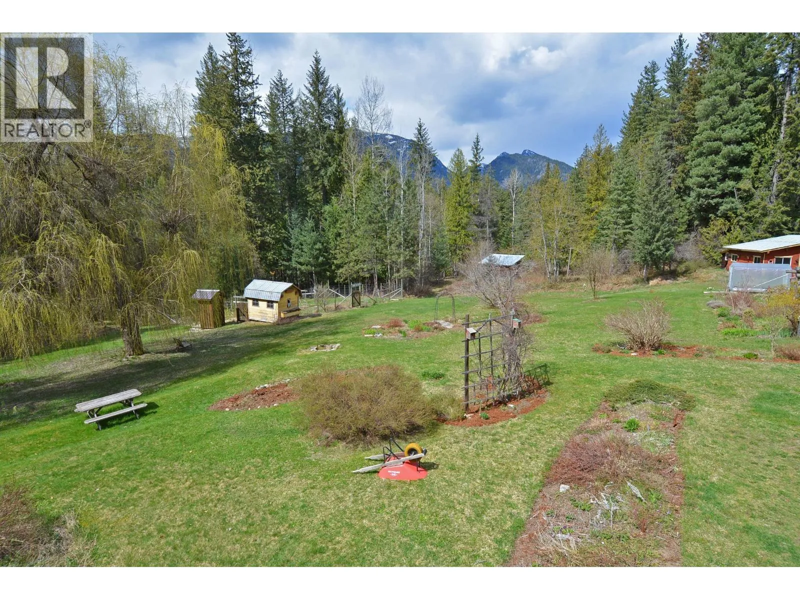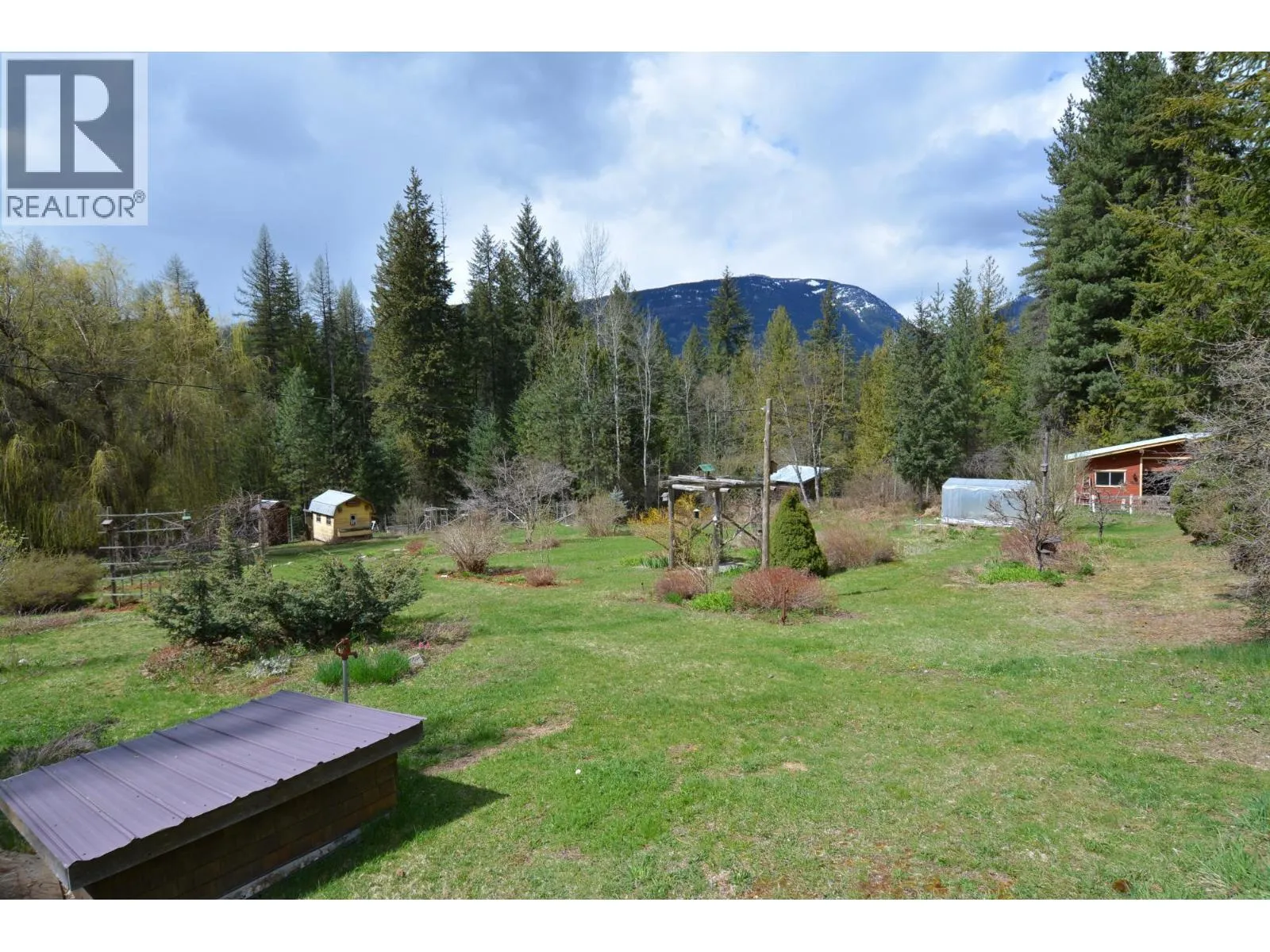 This remarkable property is a rare 49.2 acres of natural beauty. The expansive flat land is mostly forested with some clearings and a large landscaped yard complete with vegetable gardens, willow trees, fruit trees, flower beds, and multiple outbuildings. Bordering the Rail Trail, outdoor adventures are right at your doorstep, while stunning views of the Valhallas provide a picturesque backdrop