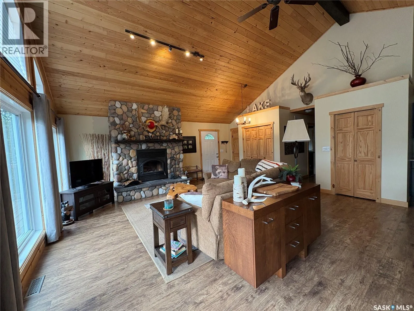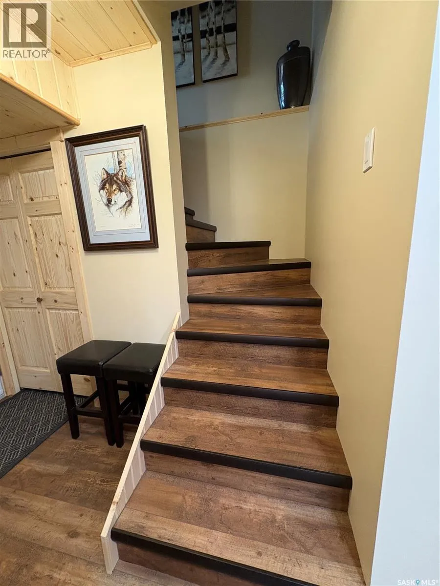 Welcome Home! Are you looking for your next destination? Enjoy your morning coffee in the Sun Room, or on the beautiful deck. This beautiful lakeview cottage, located on Cowan Lake offers open concept kitchen, dining and living room, 3 bedrooms, 4 piece main bath that has access from the M-Bedroom. Dark kitchen cabinets, with laminate counter top accents the custom