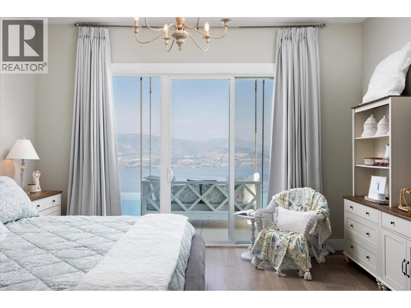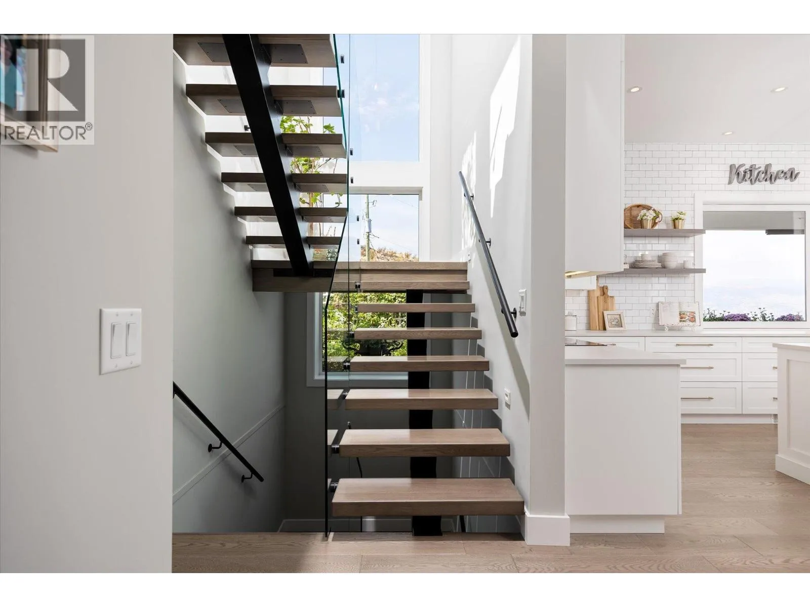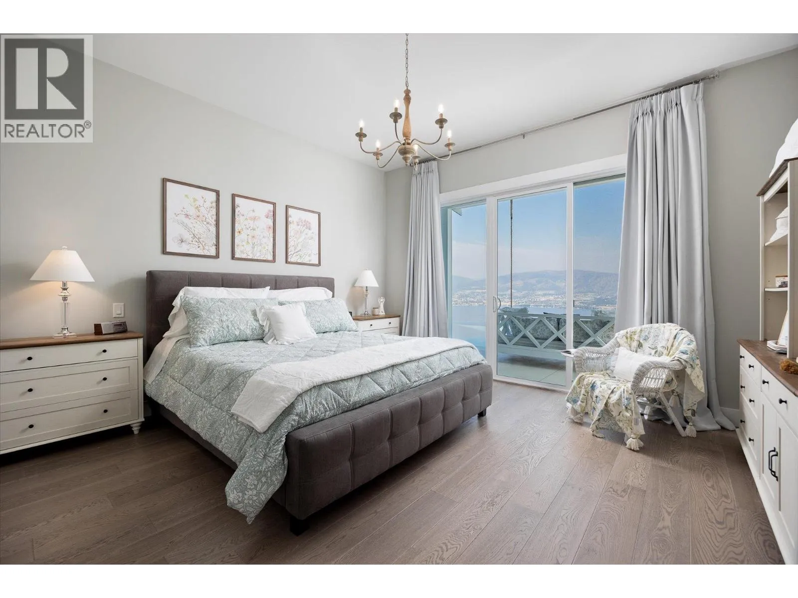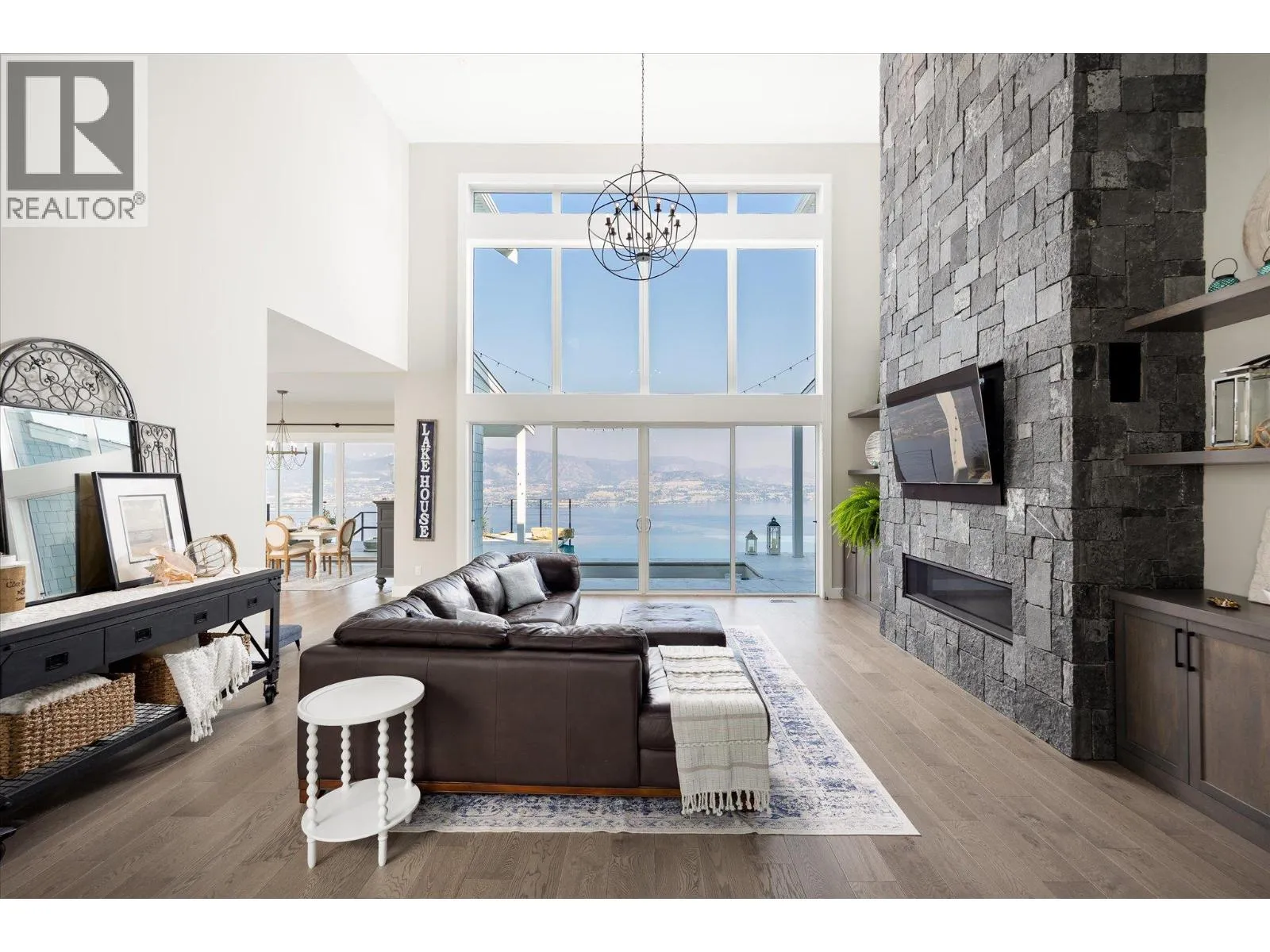 The best view in Kelowna. 2019-built 4 bedroom, 5 bathroom, 5,100+ square foot Modern Hamptons residence perched on a 5.129-acre lot in the Upper Mission area of Kelowna! Upon entering the property, you’re greeted with your substantive driveway that carves through the rock, creating a unique estate feel. The grounds include substantial mature landscaping, a custom greenhouse/garden area, a large