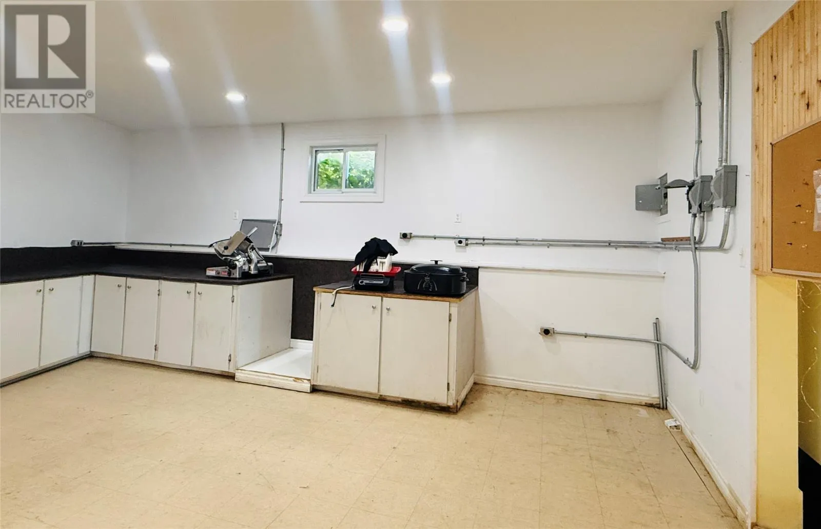 This rare package deal includes a two-apartment two-storey home, a retail space, and a spacious 25×30 detached garage. The opportunities are endless! The commercial space, once home to a well-known convenience store, offers nearly 5,000 sq. ft. of retail and warehouse space, complete with a walk-in freezer, kitchen area that was used as a takeout and additional basement storage.