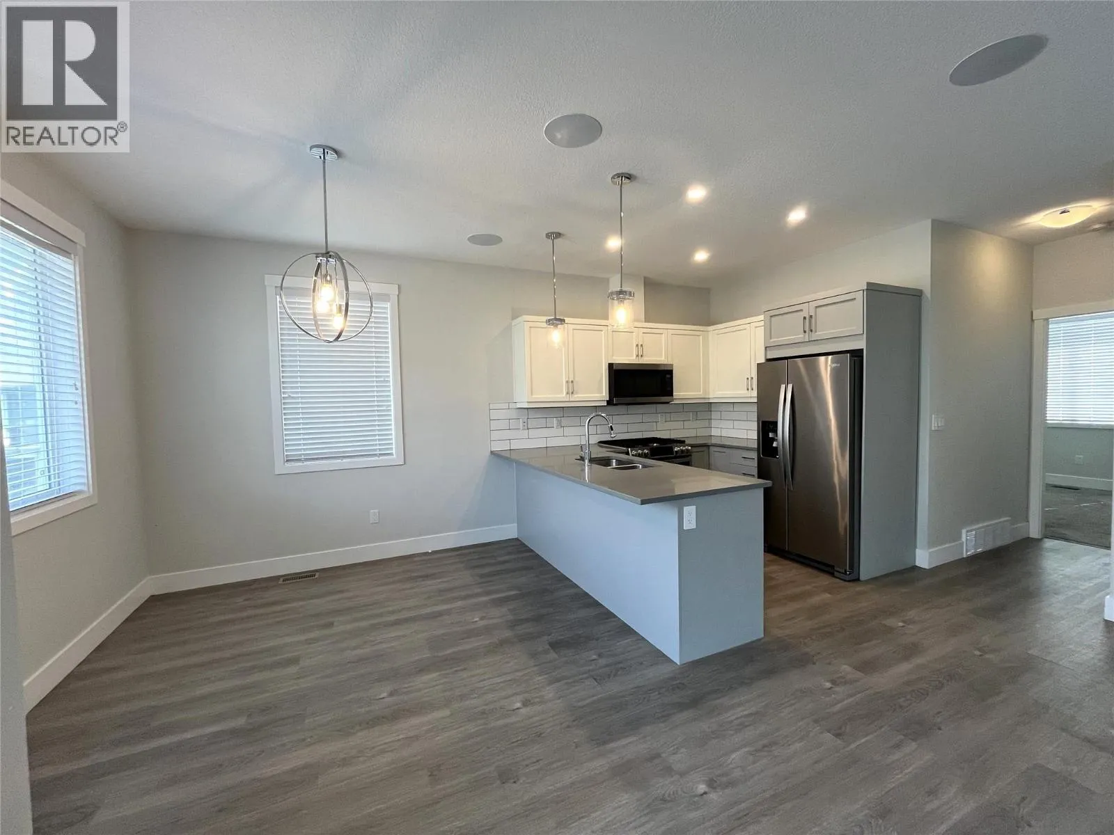 Built in 2020, this Orchards Walk bareland strata end unit offers 3 bedrooms and 3 bathrooms with a family friendly, functional layout. 9′ ceilings on both levels, spacious kitchen, upgraded stainless steel appliance package, roughed-in central vac, fully fenced yard and steel garden boxes are just some of the upgrades this home offers. The entire home is also