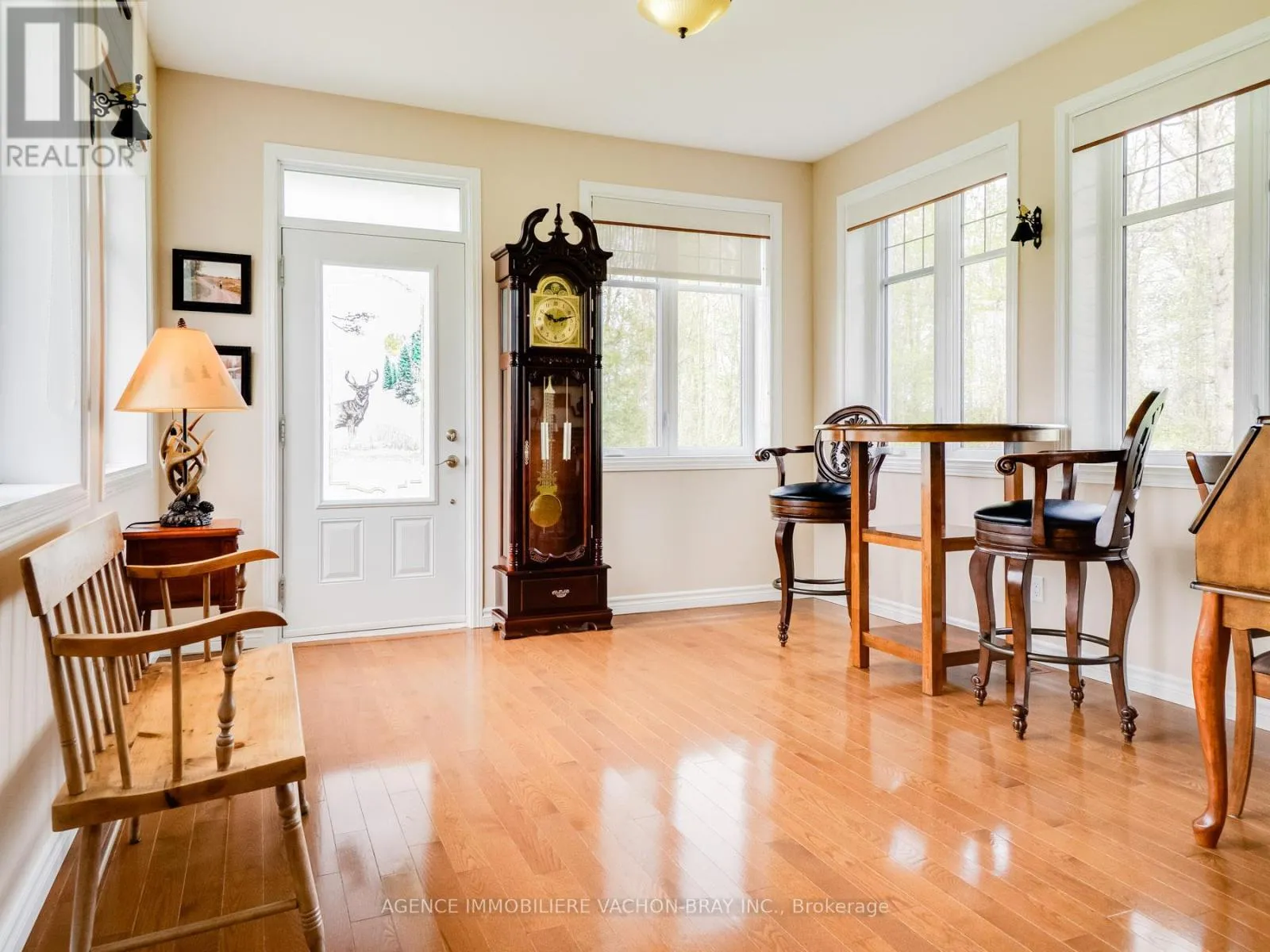 Apple Hill ! Nestled on a sprawling 66-acre private, treed lot, this stunny property offers the ultimate tranquility. Bungalow built in 2011 > Lovely & unique home radiates warmth and charm, exceptional window size. Insulated Concrete Form (Nadura Foundatation). Main floor features large open and bright kitchen with plenty of cupboard space and a dining room,