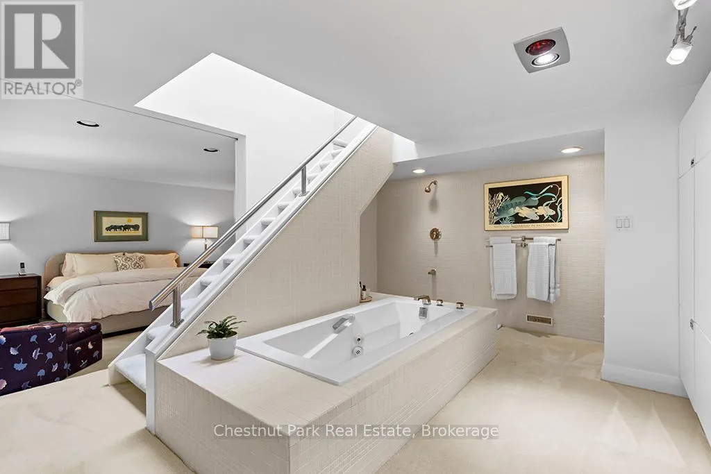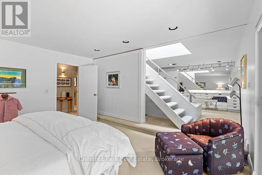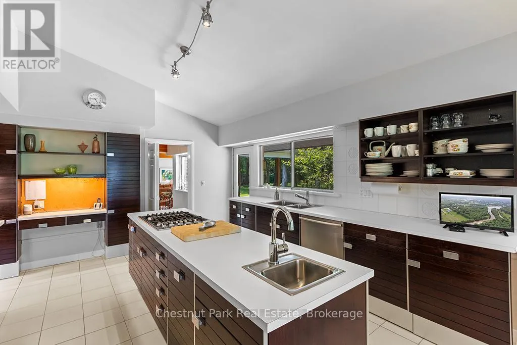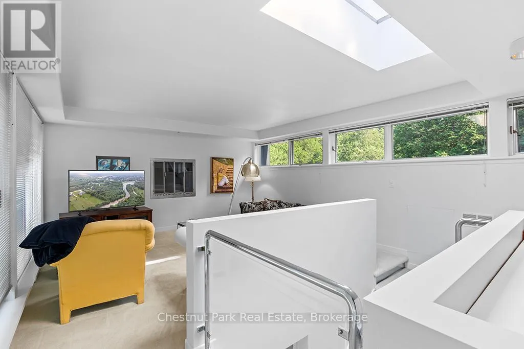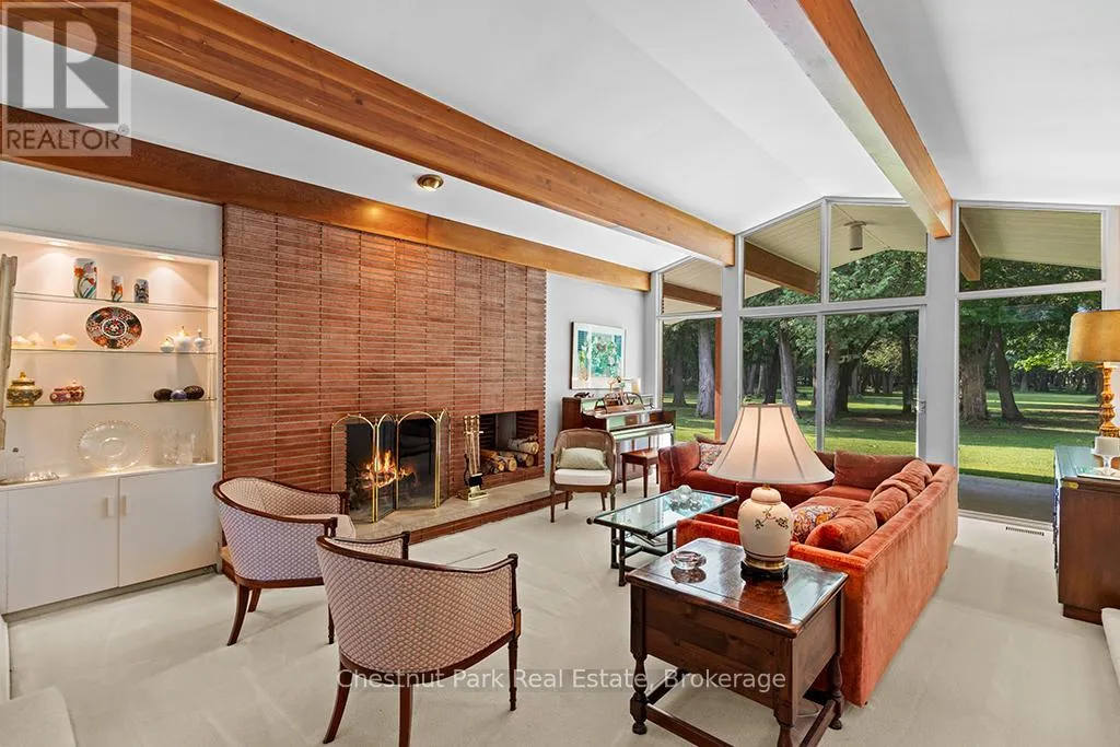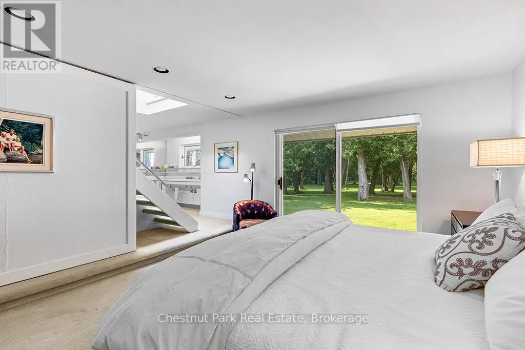Architectural elegance meets natural serenity in this 3,500 sq. ft. Frank Lloyd Wright-inspired bungalow, set on over 5 acres backing directly onto the Saugeen River. Swim, fish, kayak, paddleboard, canoe, or cross-country ski-right from your own backyard. A rare blend of timeless design, privacy, and year-round recreation, this home exemplifies Wright’s philosophy of harmony between form and nature. Striking horizontal