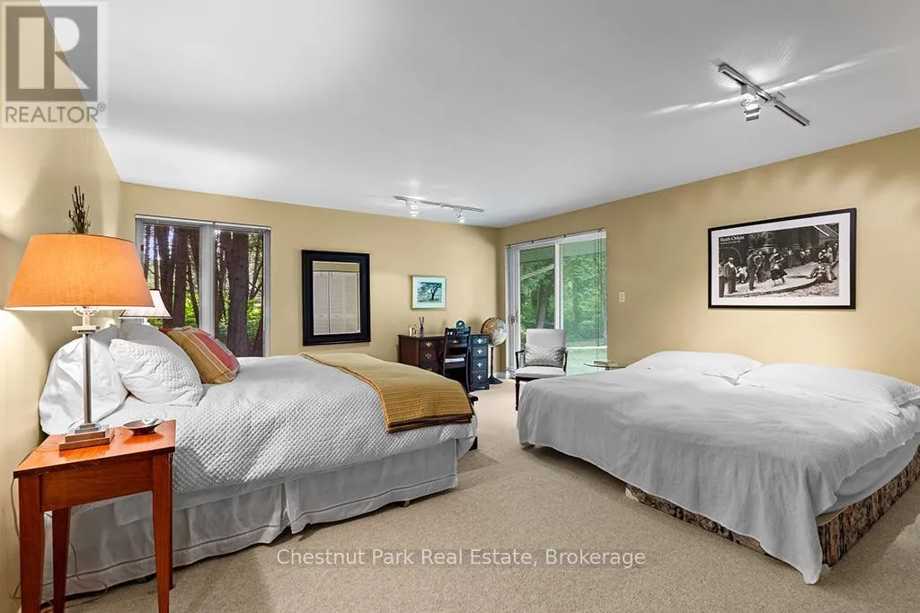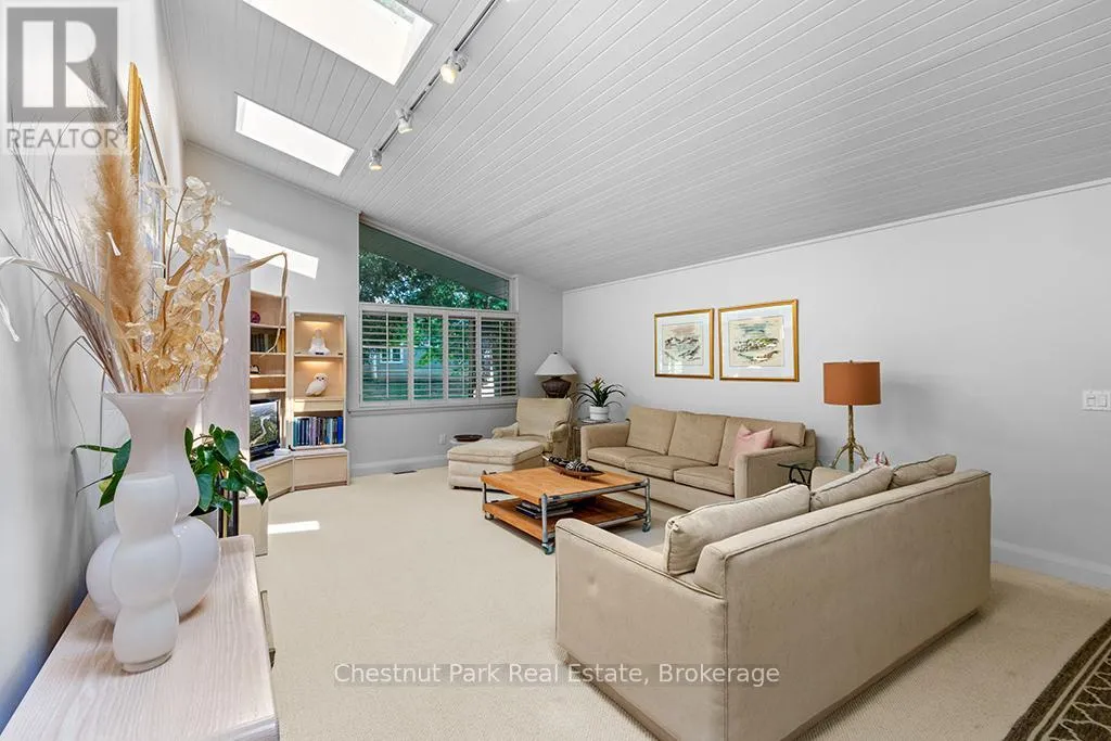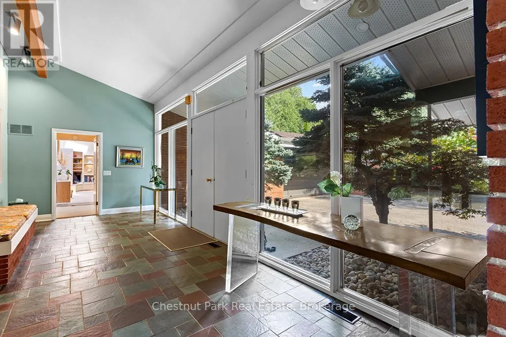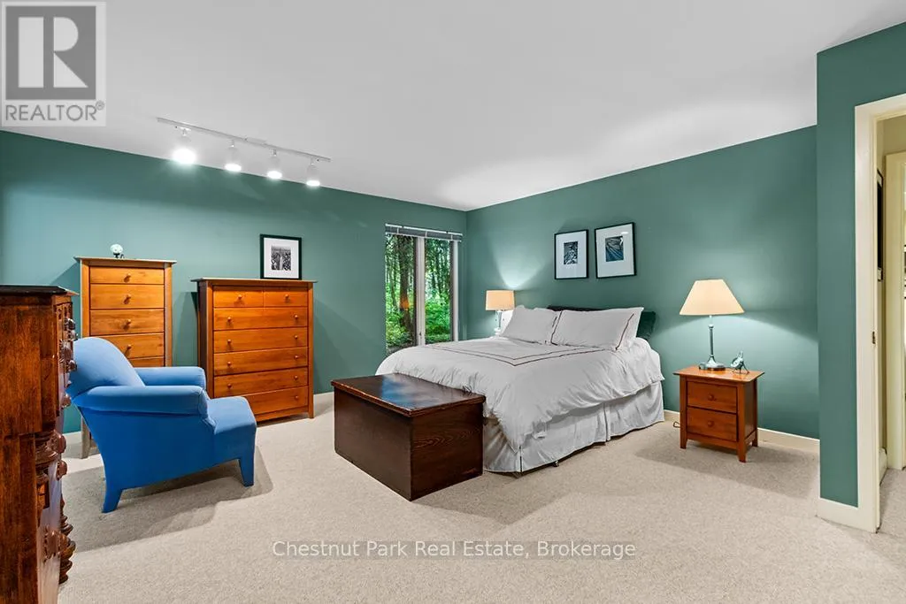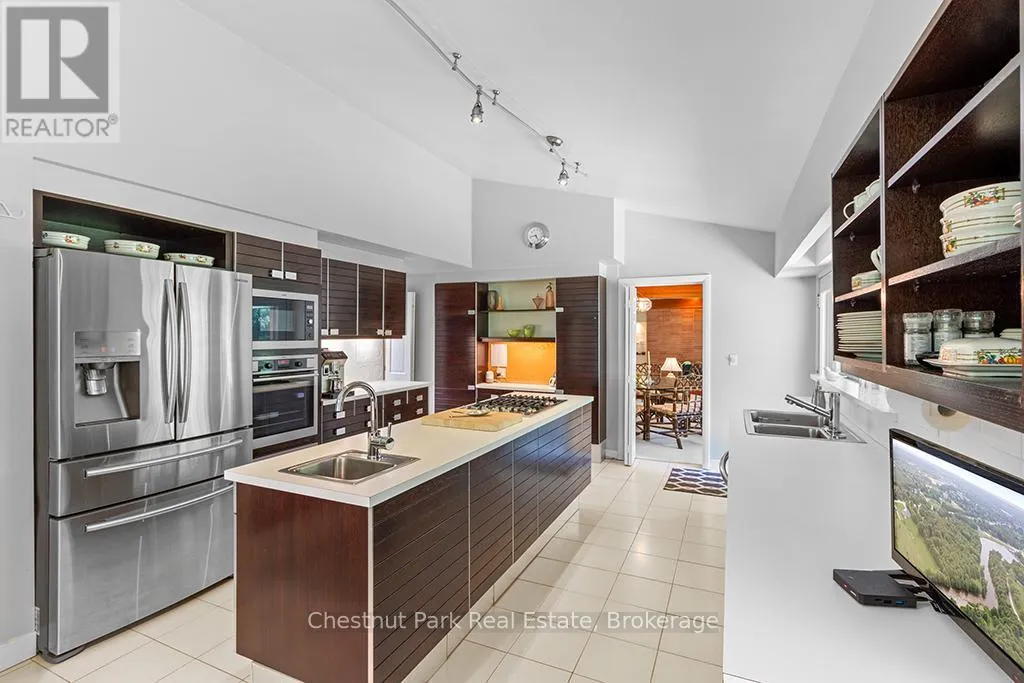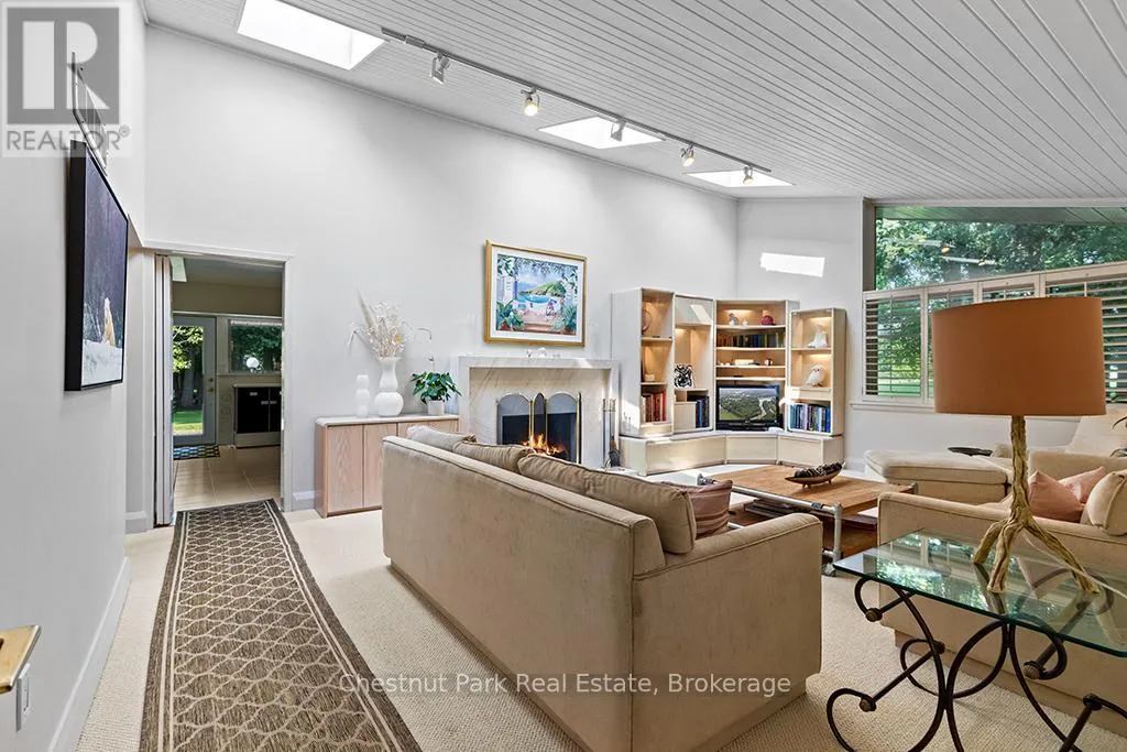 Architectural elegance meets natural serenity in this 3,500 sq. ft. Frank Lloyd Wright-inspired bungalow, set on over 5 acres backing directly onto the Saugeen River. Swim, fish, kayak, paddleboard, canoe, or cross-country ski-right from your own backyard. A rare blend of timeless design, privacy, and year-round recreation, this home exemplifies Wright’s philosophy of harmony between form and nature. Striking horizontal