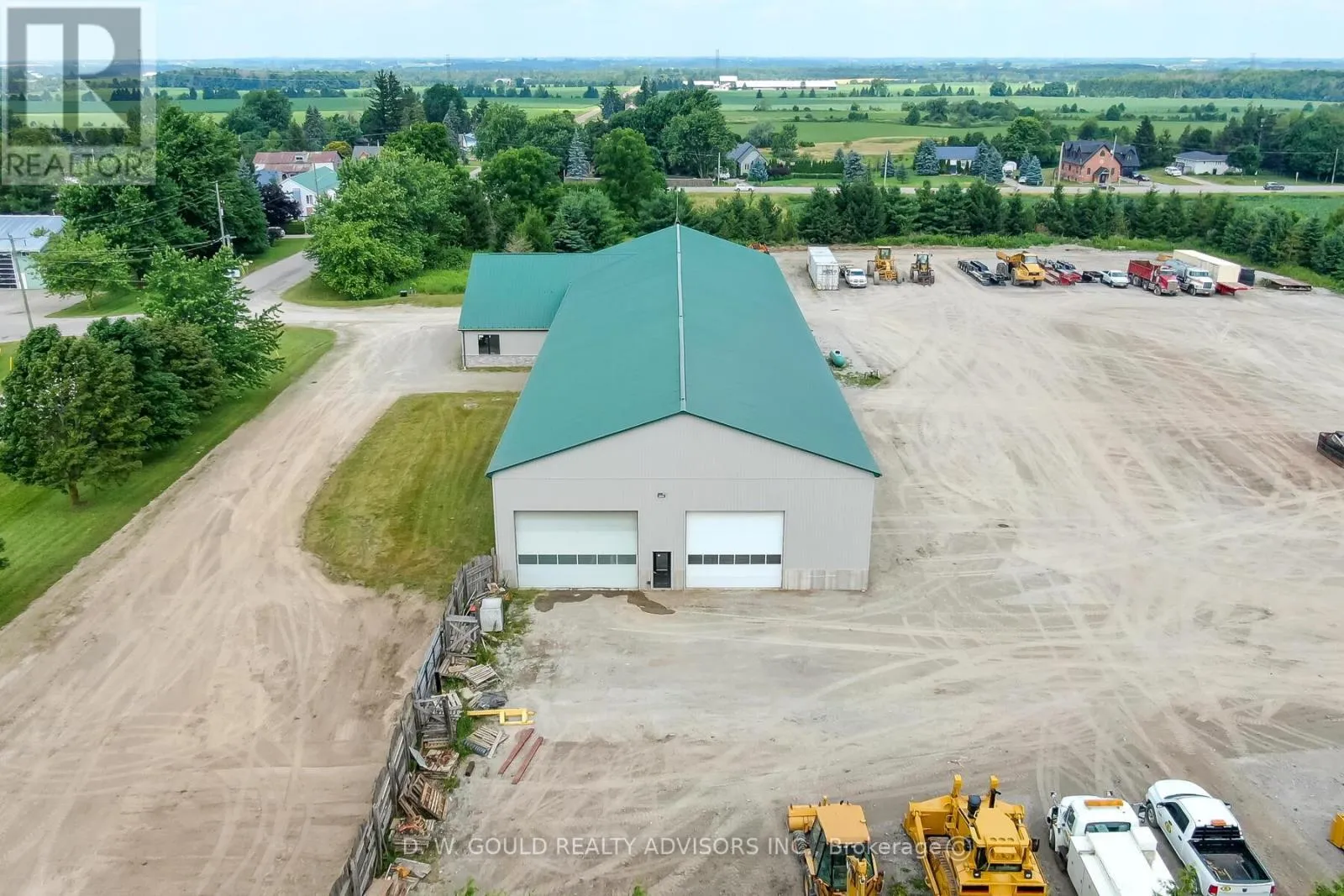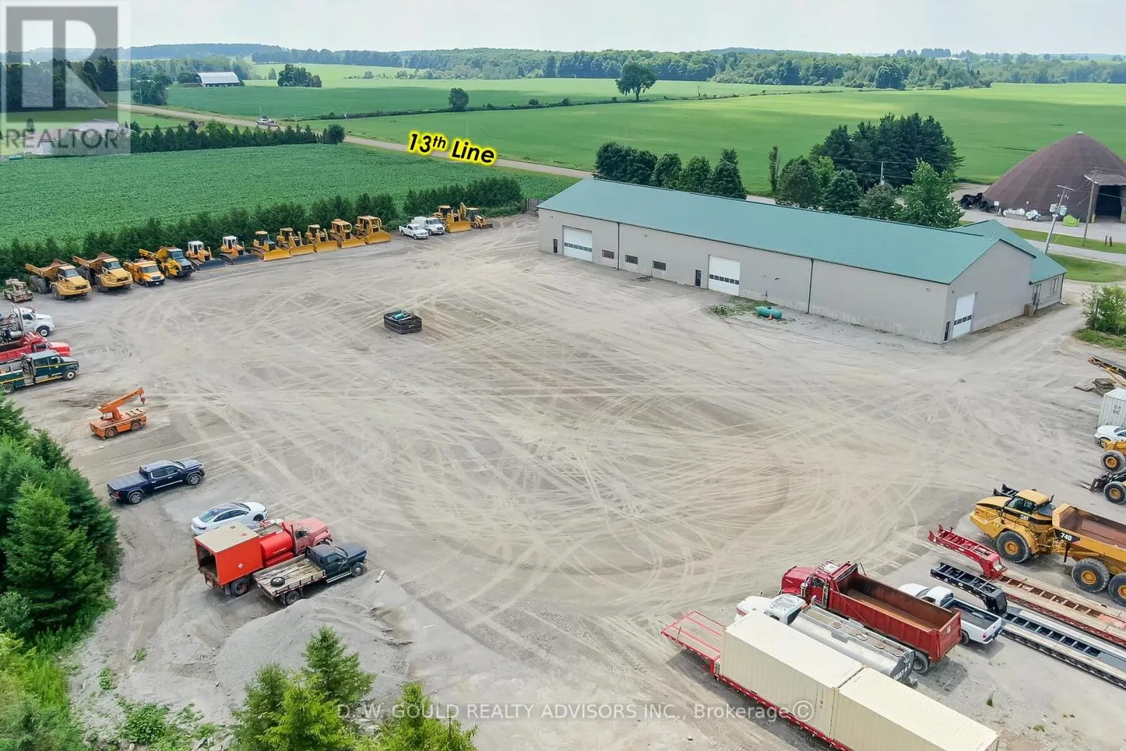 +/- 13,800 sf Industrial/Commercial freestanding building, with a very useful configuration including shop and indoor storage, on +/- 5.16 acres Lot in East Garafraxa. Large portion of Storage Land, graveled. Rare M1 zoning allowing outside storage, transportation depot and more. Suitable for Contractor’s yard as well. 5 Drive-in doors: 1 x 13’8″W by 13’8″H, 2x 15’8″W by 13’8″H, 2x 19’8″W