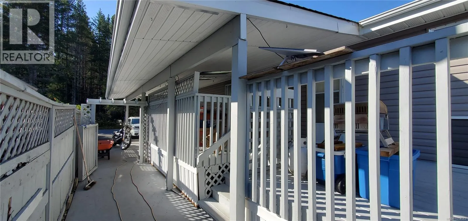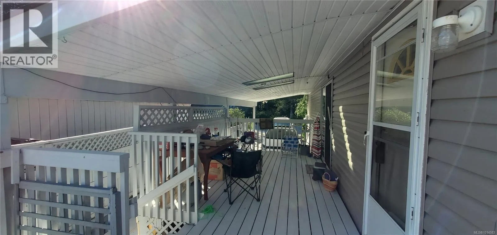 +"PublicRemarks": "Well-maintained double-wide manufactured home on its own lot. Updates include vinyl siding and skirting, vinyl windows, and 2 sides of new fencing. This spacious home offers a bright, open living area with 3 bedrooms and 2 bathrooms, laminate and tile flooring. The primary bedroom features a walk-in closet and ensuite for added comfort. Enjoy outdoor living on the large, partly covered deck, and take advantage of the convenience of a carport. Nice garden/ yard and flat lot with garden shed. Across from quiet wooded area. (id:62650)"