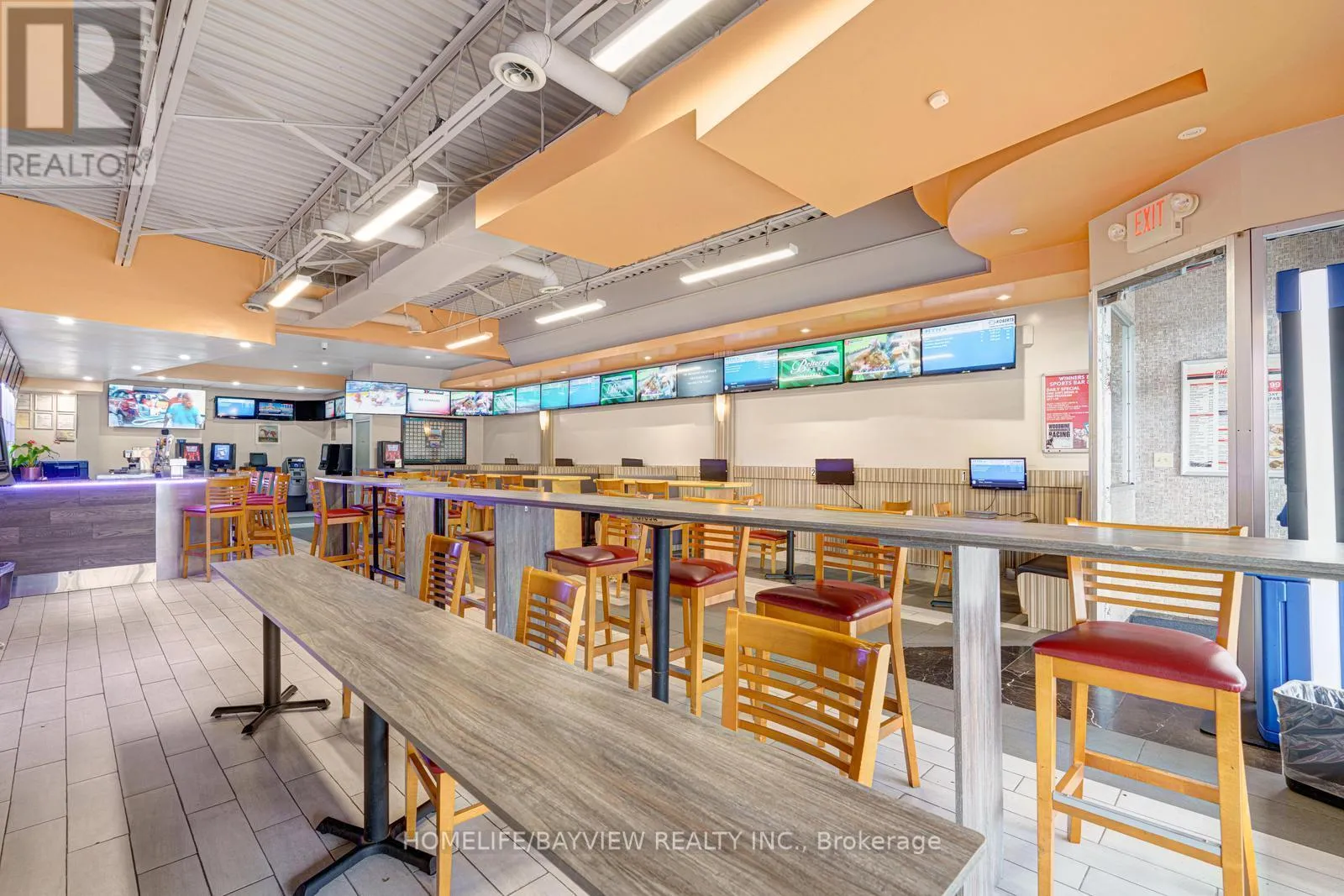 +"PublicRemarks": "Bar with Champions off-track betting and restaurant for sale. 3 businesses in one: Online gaming, bar, & Thai restaurant. LLBO for 85 seats. Steady income: OLG online betting commission averages $12,000/month, Lotto machine commission $1,500/month, ATM commission $900/month, bar sales $25,000-$30,000/month, Thai restaurant sales $30,000/month. Easy operation with only 2 FT + 2 PT staff. Established for many years and in a prime plaza surrounded by high density residential area. Full kitchen could be converted to any type of cuisine. Rent $6900/month includes TMI & HST. Lease 3 years + 5 years option to renew. Don't miss this amazing opportunity. Please do not go direct without appointment. Do not talk to staff/customers. (id:62650)"
