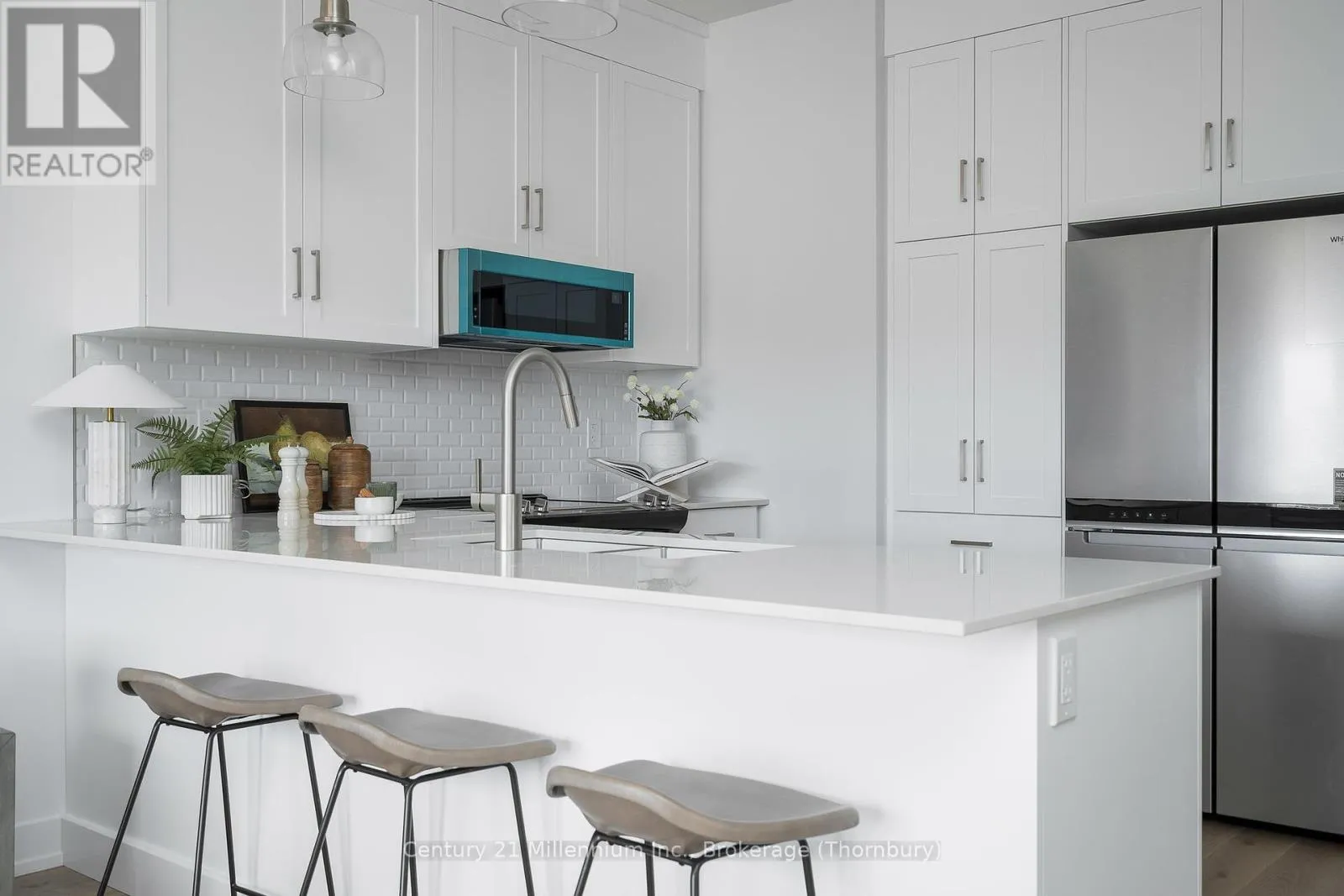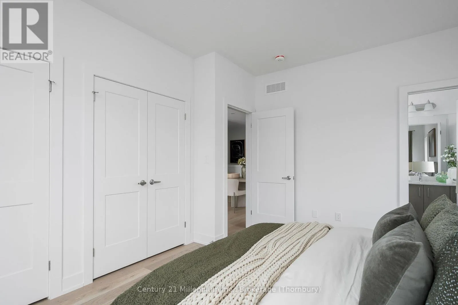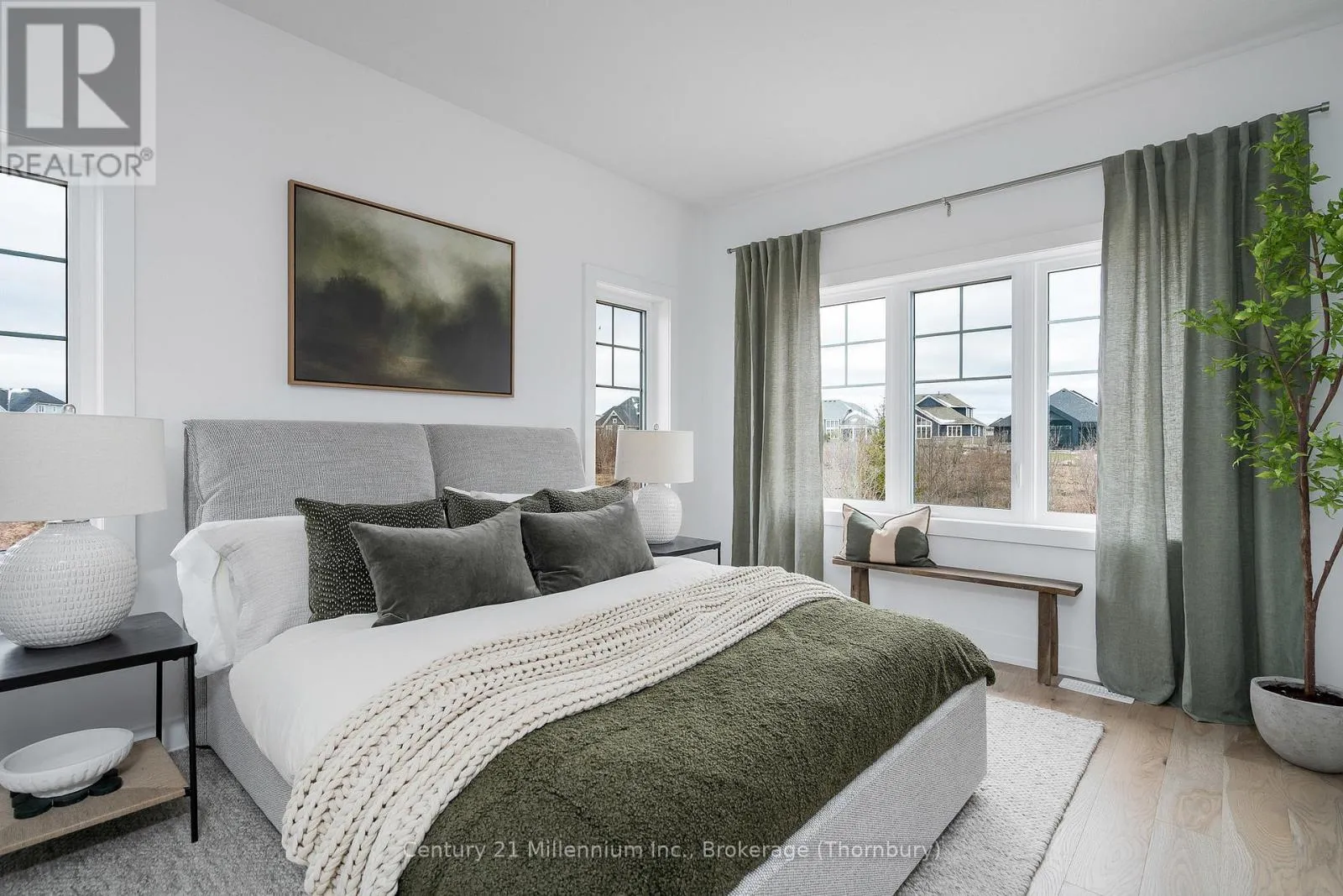 Newly built, move-in ready- can close immediately. New FREEHOLD (Common Element) Townhome. Come live in Cobble Beach, Georgian Bay’s Extraordinary Golf Resort Community. This Grove (end unit) bungalow is 1,215 sq ft 2 bed 2 bath and backs on to green space. Open concept Kitchen, dining, great room offers engineered hardwood, granite counters and an appliance package. Primary bedroom is