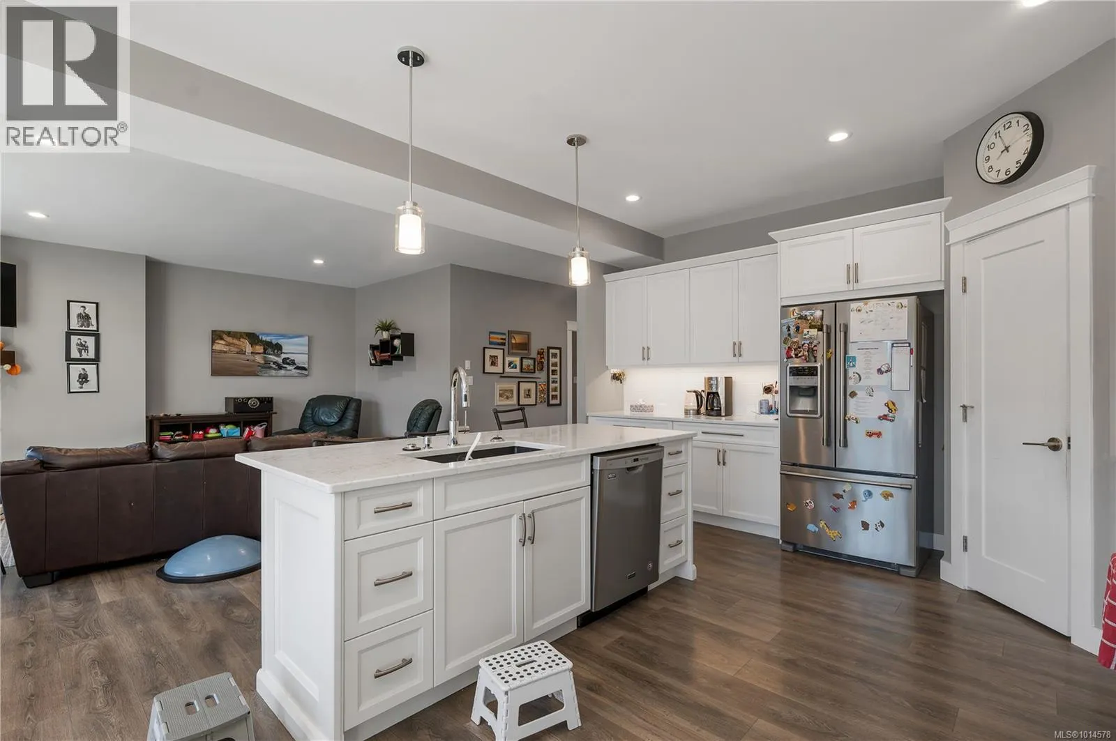 Pride of ownership shines in this stunning 5 bed, 3 bath home on a spacious .24-acre lot. The open-concept design features a chef’s kitchen with white cabinetry, quartz counters, stainless appliances, and ample storage. The bright living room offers a cozy gas fireplace, while the main floor includes a versatile 5th bed/den. Upstairs you will find four generous sized bedrooms,