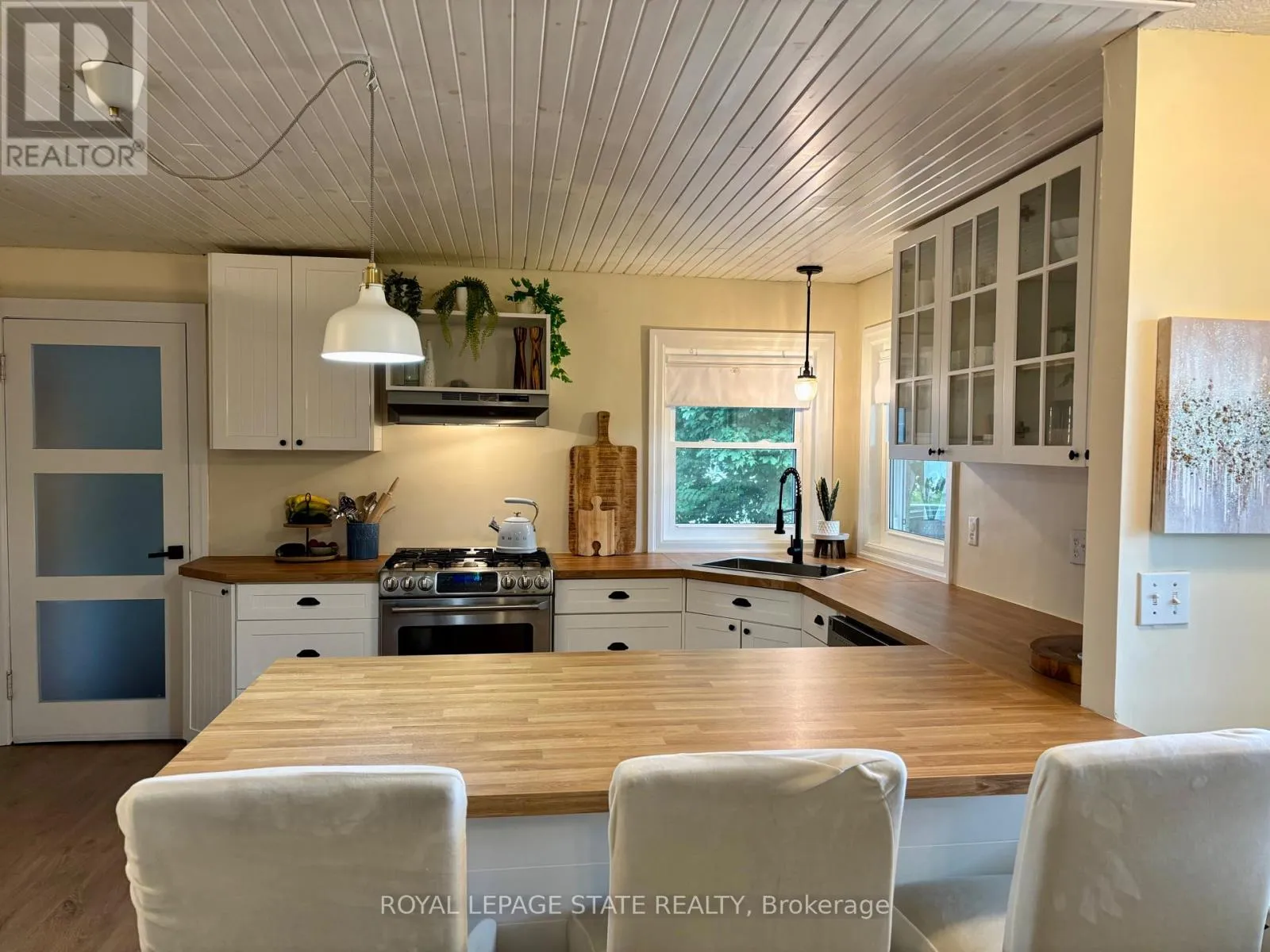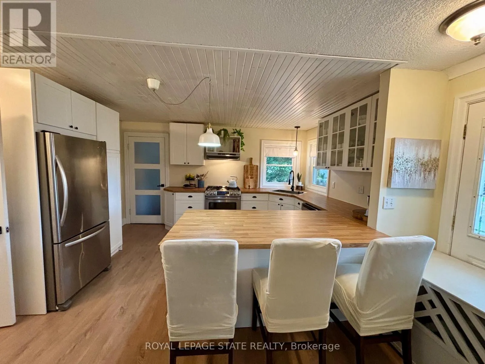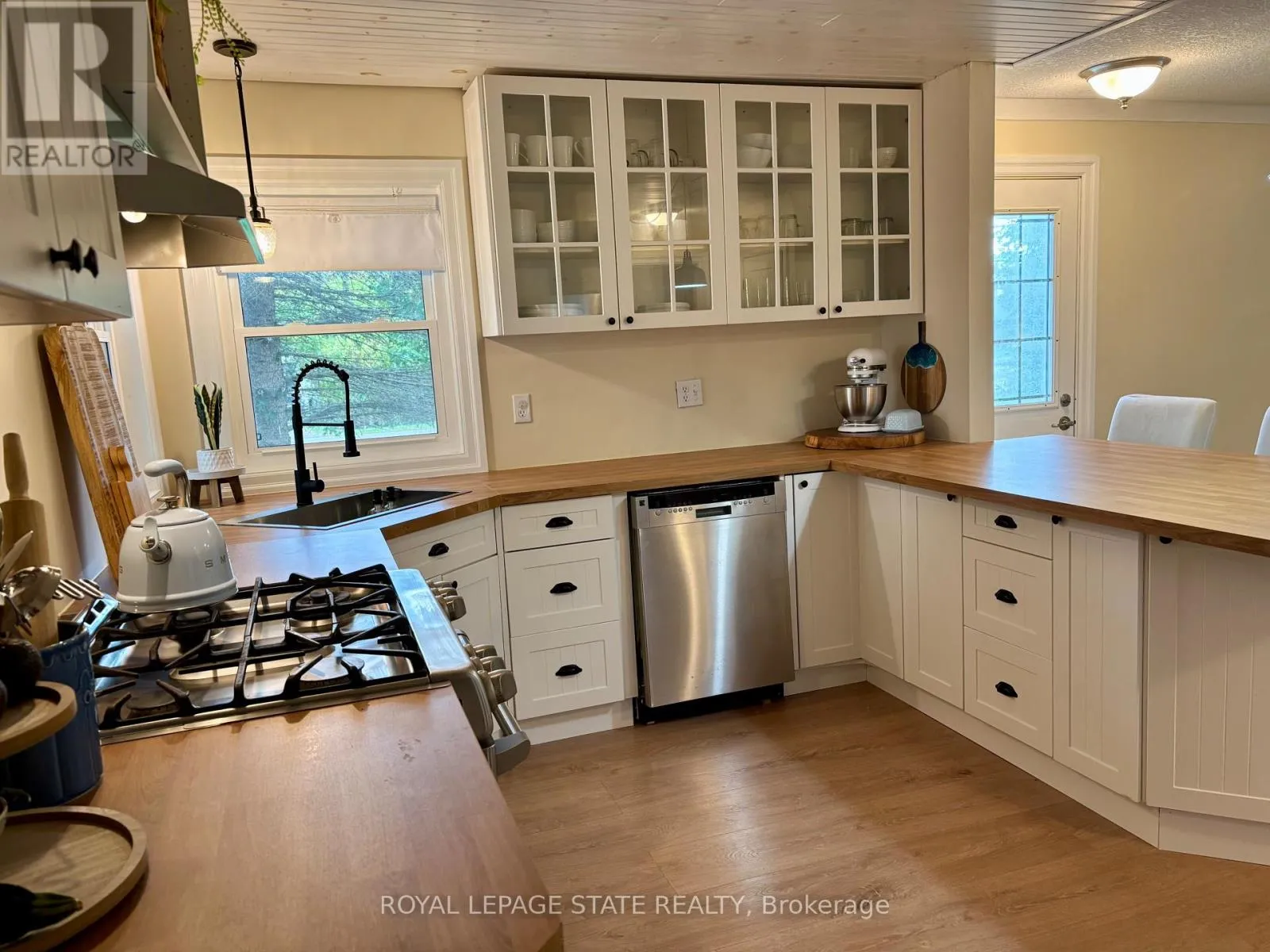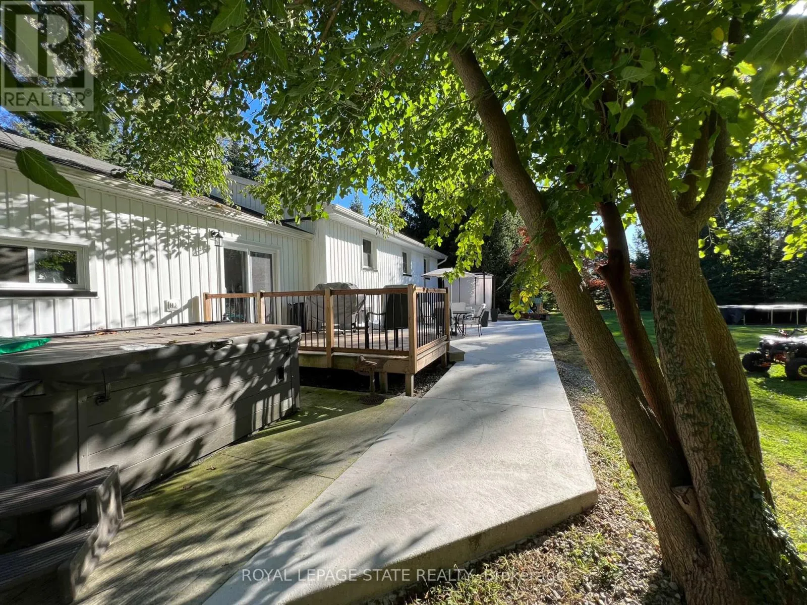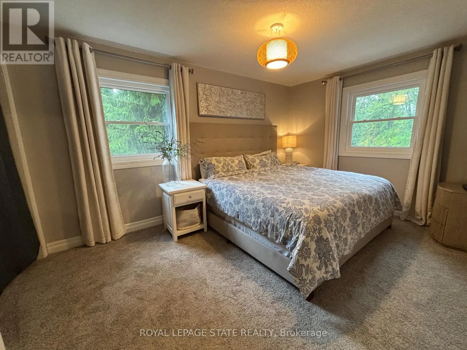 Country living close to town & all amenities! This 3+1, 2.5 bath bungalow on sought after 173 x 300 private mature treed lot. Great curb appeal with brick & vinyl sided exterior with attached garage, ample parking, deck, large patio and private mature treed backyard. Breezeway foyer to open interior layout: kitchen with breakfast bar, stainless steel appliances, spacious