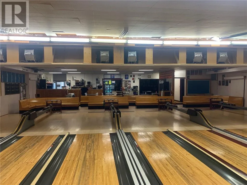 Great opportunity for a family or small scale entrepreneur – turn key operation – BOWLING ALLEY. Centrally located and well established (60+yrs) within the community. Certified eight lanes – 5 pin. Well maintained with recent improvements (shingles, insulation, kitchen equipment, cash registers, natural gas furnace). Two nationally ranking standards, Glow Bowl outfitted, Liquor License and snack bar with kitchen for