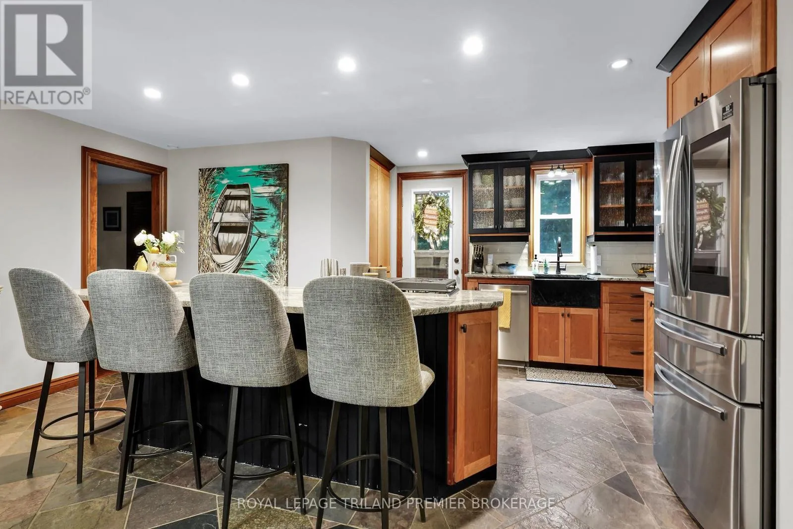 Relax and unwind at your private oasis nestled in the woods! This stunning home is situated on over 3 acres of lush green forestry in desirable Port Franks. Drive up one of the two private winding paths to this updated 1.5 storey home boasting all the amenities for everyday life and play! Enter through the front door into the grand