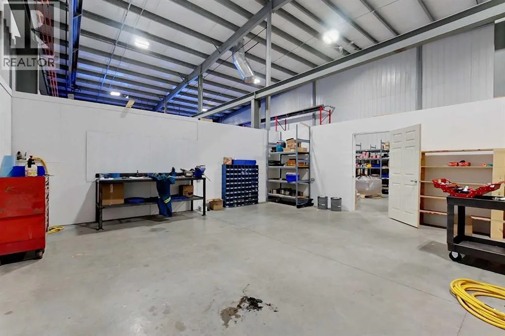 Industrial condo located in Gateway Industrial Park, just east of Rocky Mountain House. Just off Highway 11 with easyaccess and good visibility. End-unit with ample parking, outdoor has a side-gated storage space, at rear- bay is two 16X14 ft overhead doors, plus an approximate 20ft concrete apron. The shop has radiant heat ( one on the east and one on