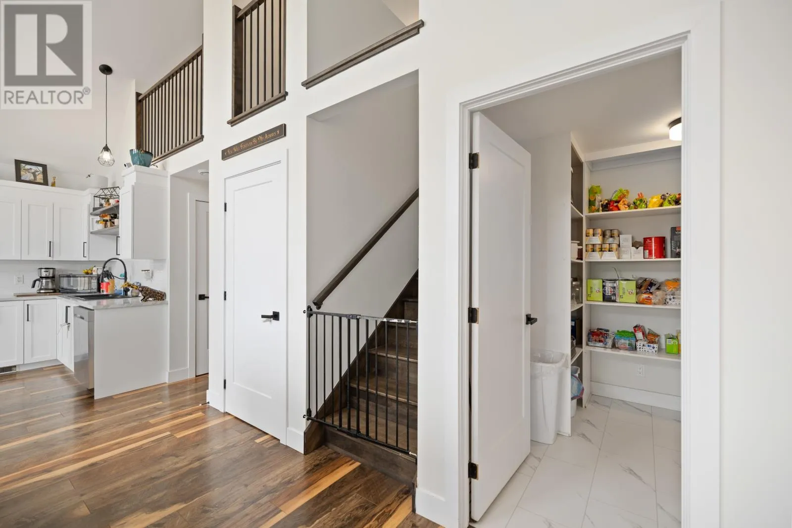 Welcome to this beautiful 4 bedroom, 2 bathroom home with an attached garage, thoughtfully designed for today?s modern family. The home?s striking exterior features crisp white siding, black-framed windows, and a spacious wooden deck, ideal for entertaining or simply enjoying a quiet evening. Inside, the bright open-concept main level is the heart of the home, featuring vaulted ceilings and oversized